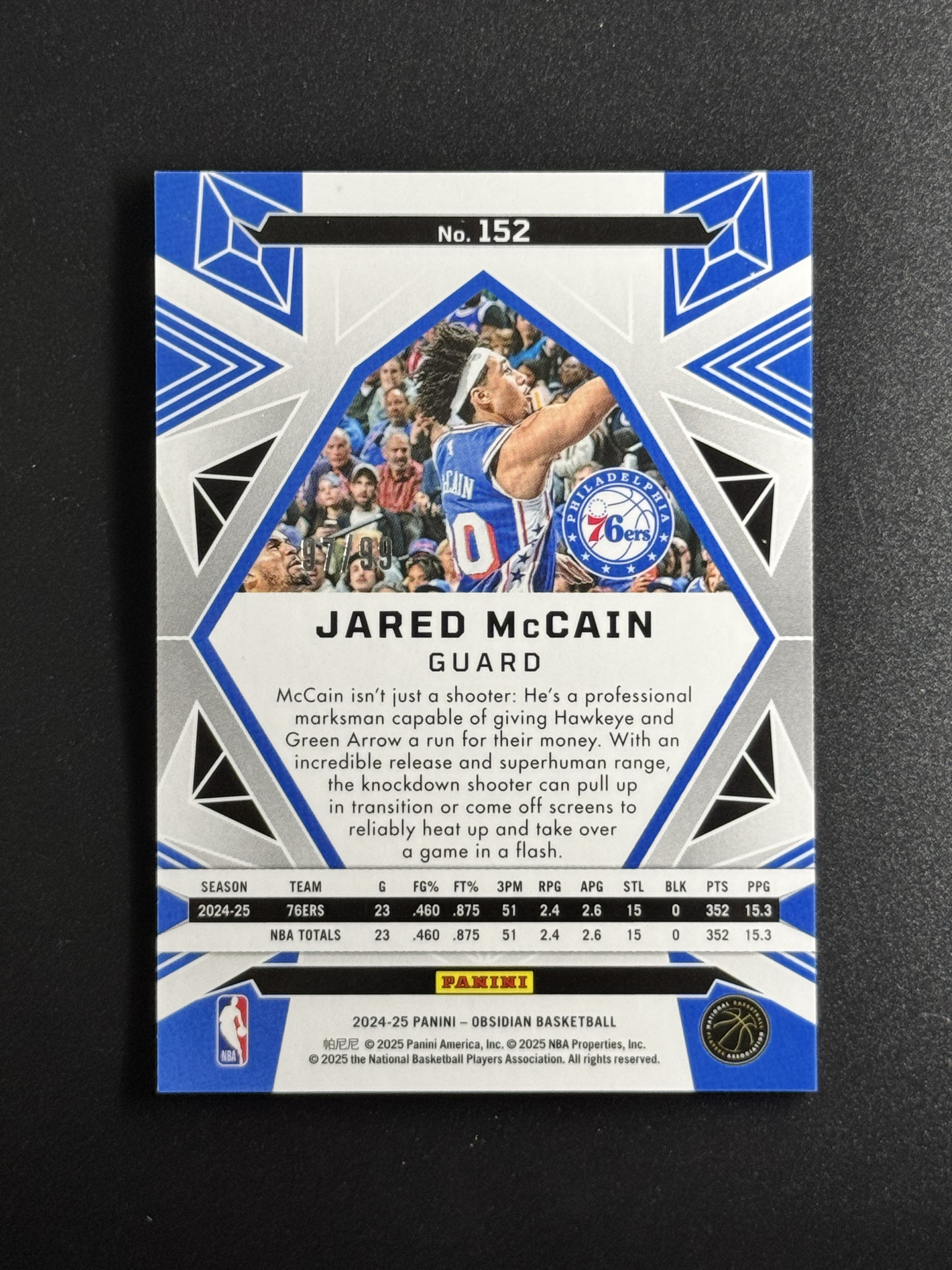 2024-25 Panini Obsidian Jared McCain RC 【小花猪代卖】黑曜石 /99编 新秀 铜折 贾里德 麦凯恩 76人 魔仙哥 vj队友 (火箭