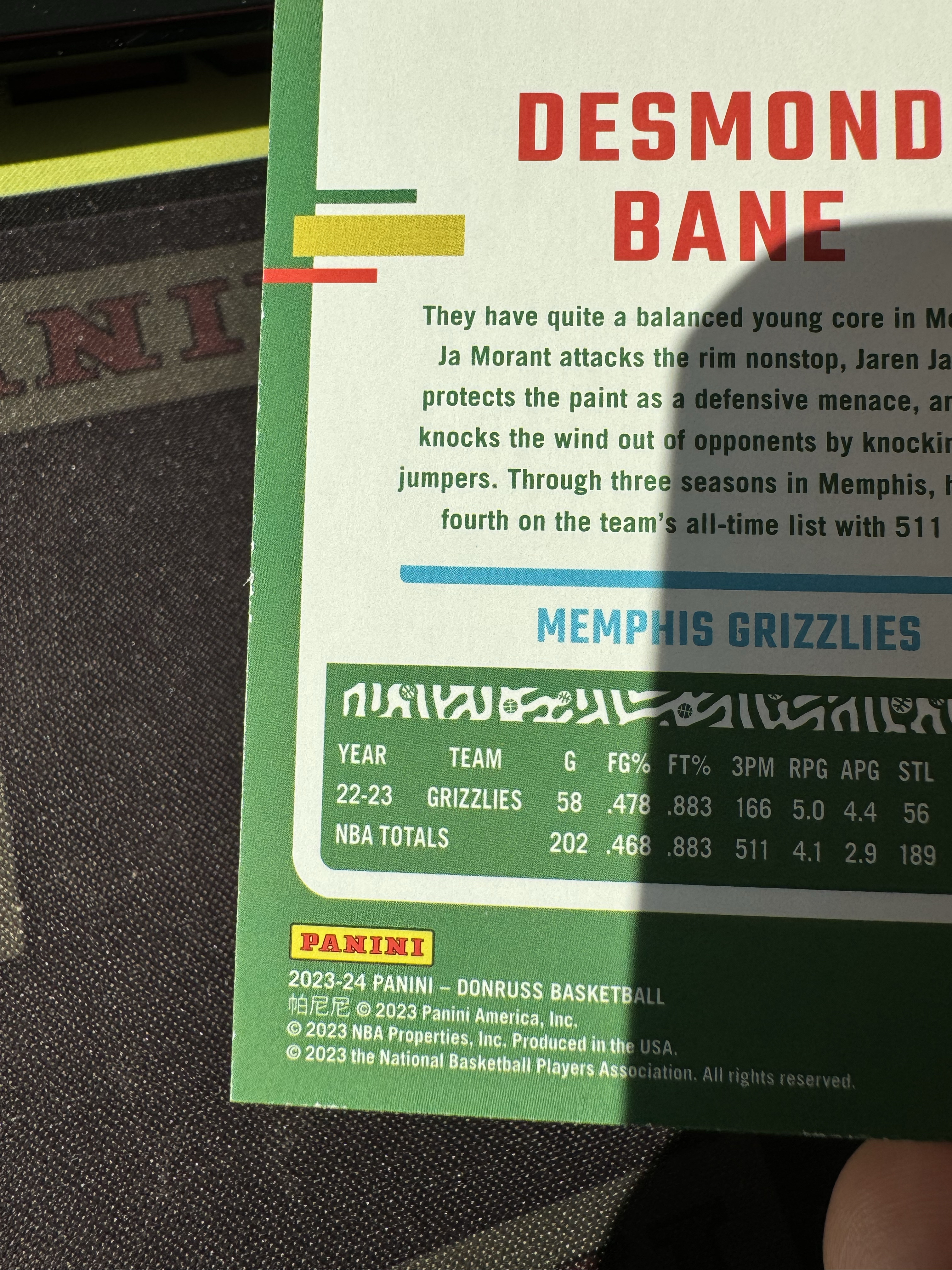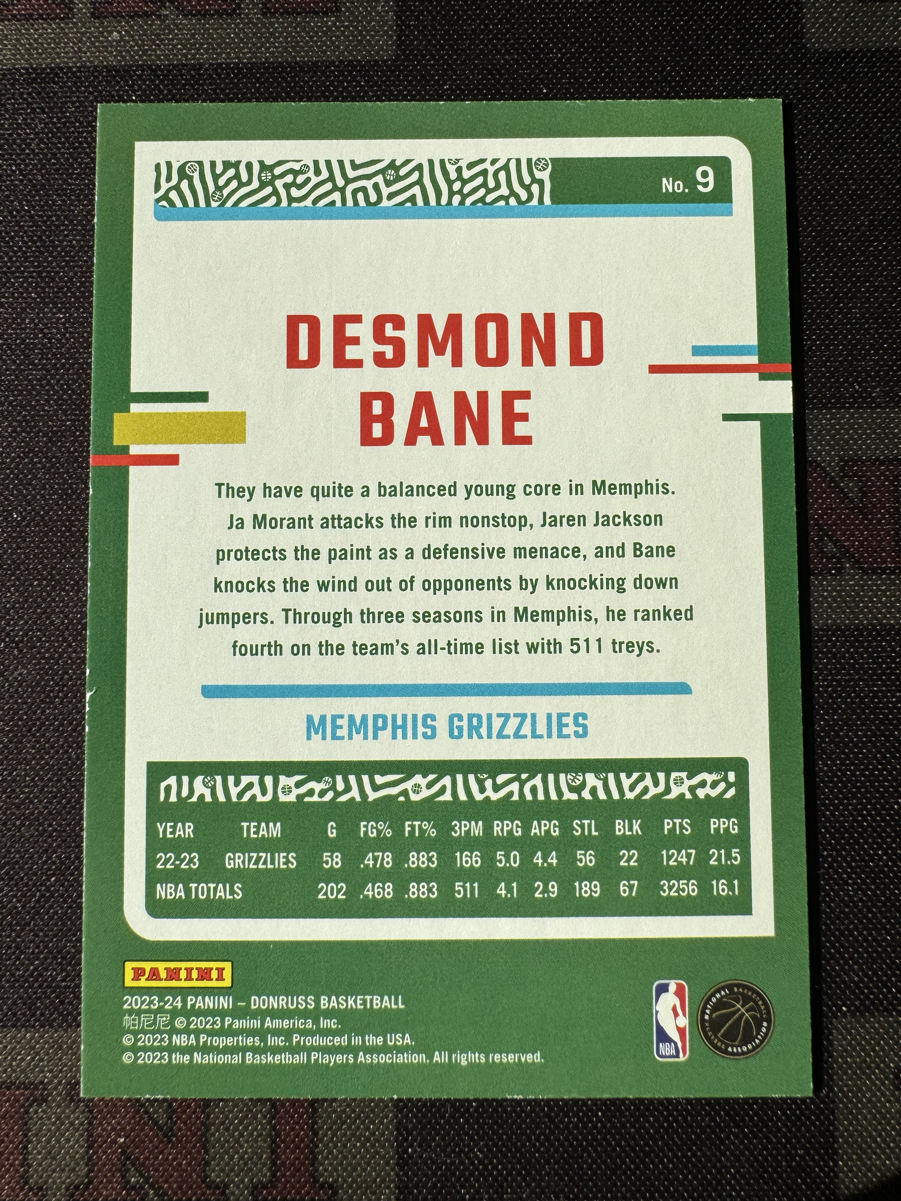 2023-24 Panini Donruss Desmond Bane 戴斯蒙德 贝恩 1of1 正一编 黑折 正base choice black prizm 黑迷宫折 正黑折 白边如图 绰号霸王龙