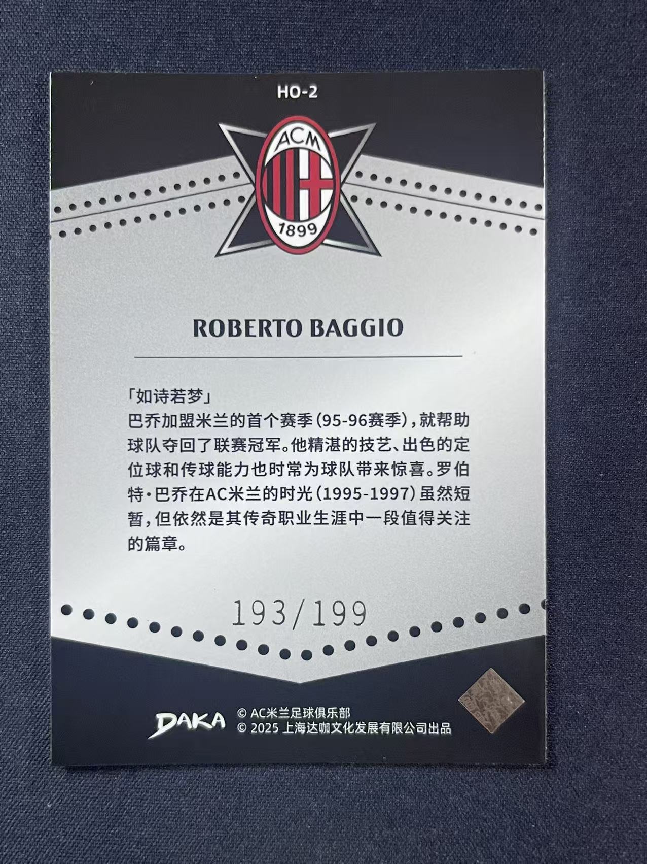 2024-25 DAKA AC米兰 MilanOne&Two队盒 Roberto Baggio 巴乔 意大利王子 HOLOCENE Base 193/199编 银平行 HO-2