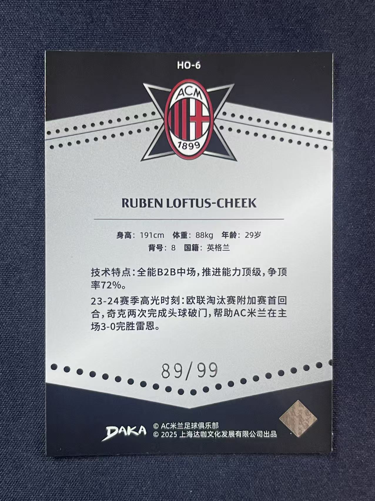 2024-25 DAKA AC米兰 MilanOne&Two队盒 Loftus Cheek 洛夫图斯 奇克 HOLOCENE Base 89/99编 紫平行 HO-6