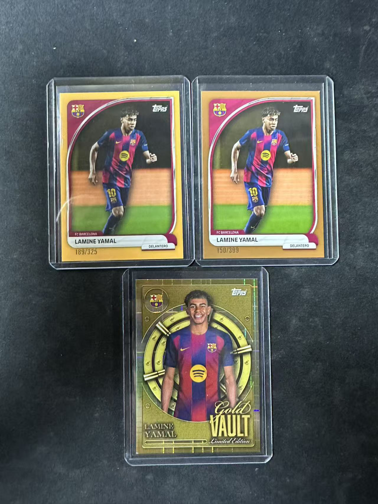 2025 Topps 巴萨队盒 Lamine Yamal 【星集卡代卖】钱鸭1209 足球 拉明 亚马尔 铁罐队盒 325编 399编 Gold Vault 金库特卡 金折 折射 3张打包