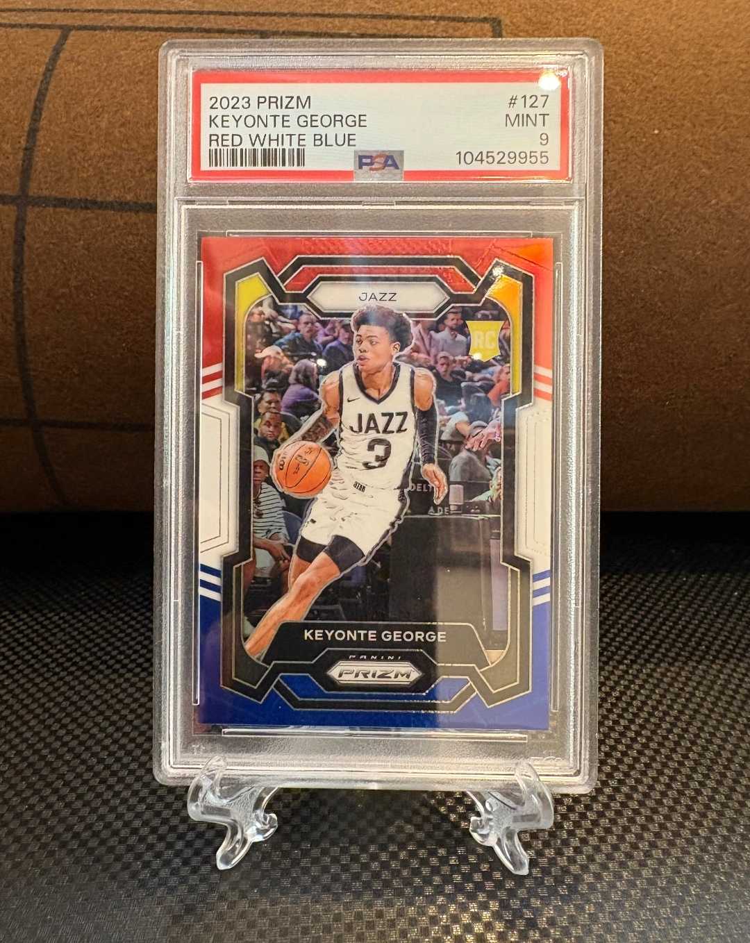 2023 Panini Prizm Keyonte George RC 基昂特 乔治 新秀 prizm 系列 pz 折射 三色 PSA 评级卡 猪猪侠 爵士 RED WHITE BLUE PSA9