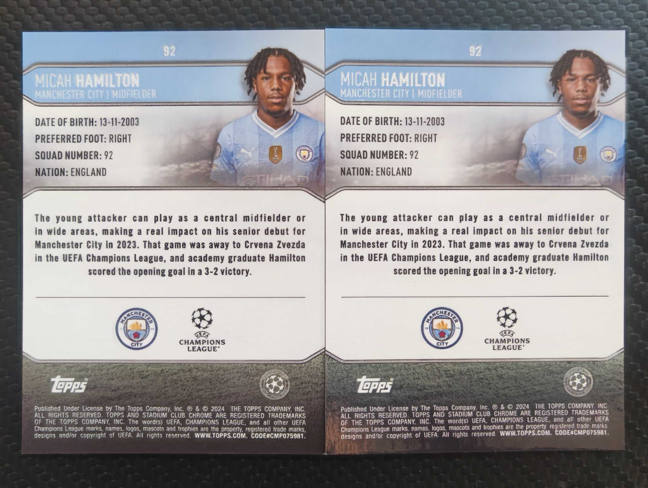 2024 Topps Stadium Club Chrome Micah Hamilton RC 欧冠 竞技场 曼城 新秀 汉密尔顿 25编 橙折 变化版 银折 2张 打包 lot 卡品见图 阅读描述