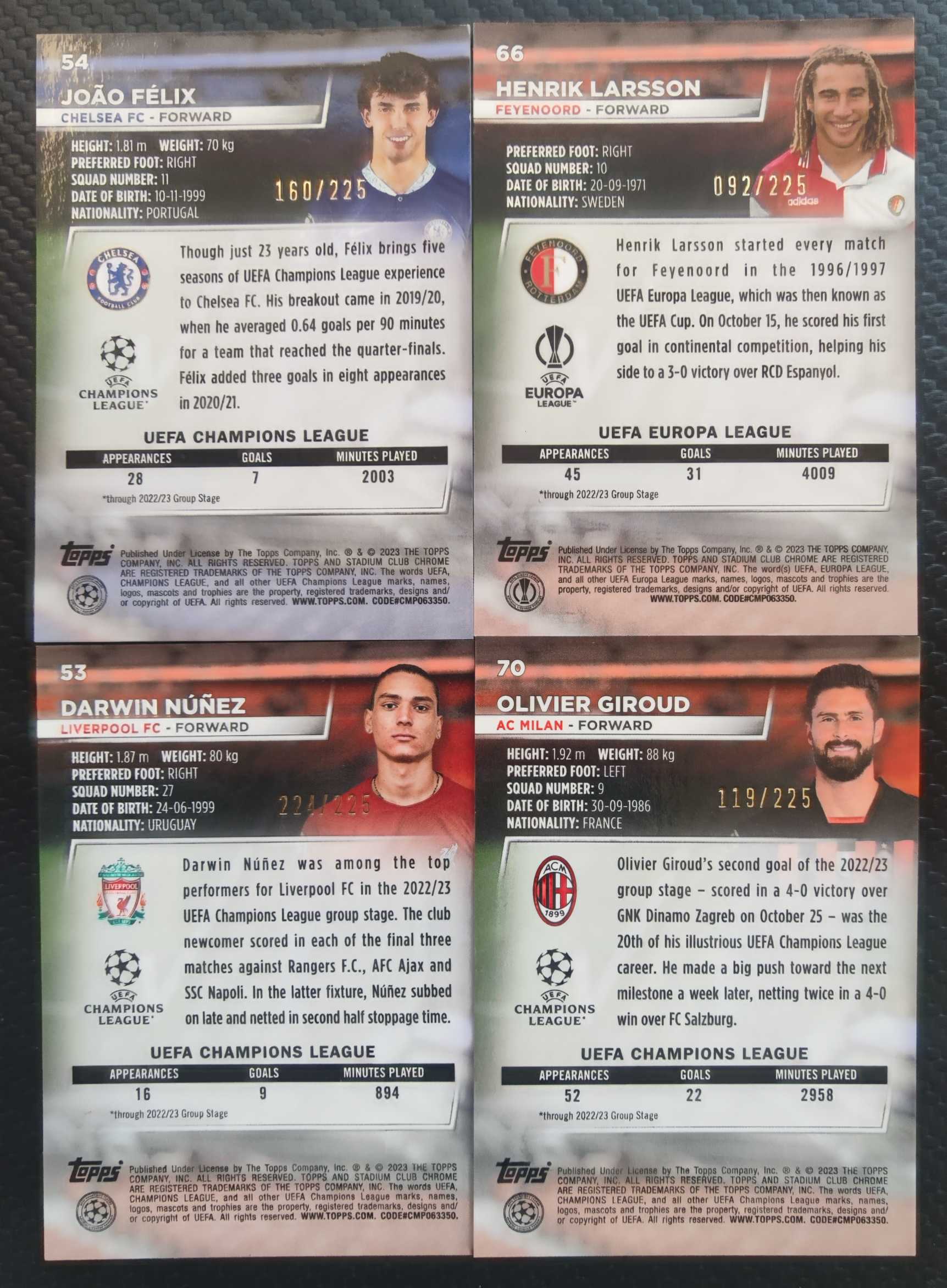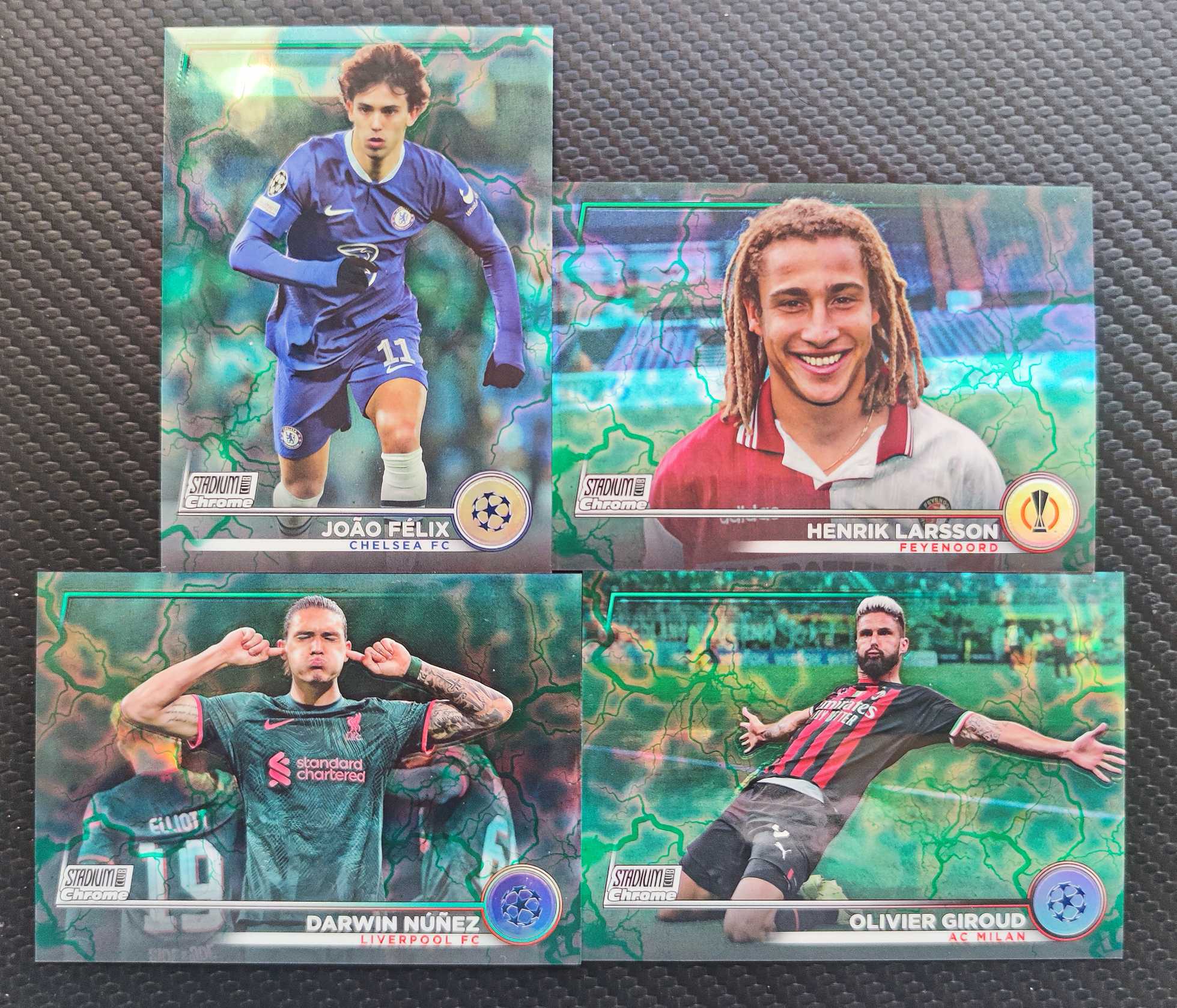 2023 Topps Stadium Club Chrome Olivier Giroud 欧冠 竞技场 大吉鲁 菲利克斯 努涅斯 拉尔森 225编 绿闪电 4张 打包 lot 卡品见图 阅读描述