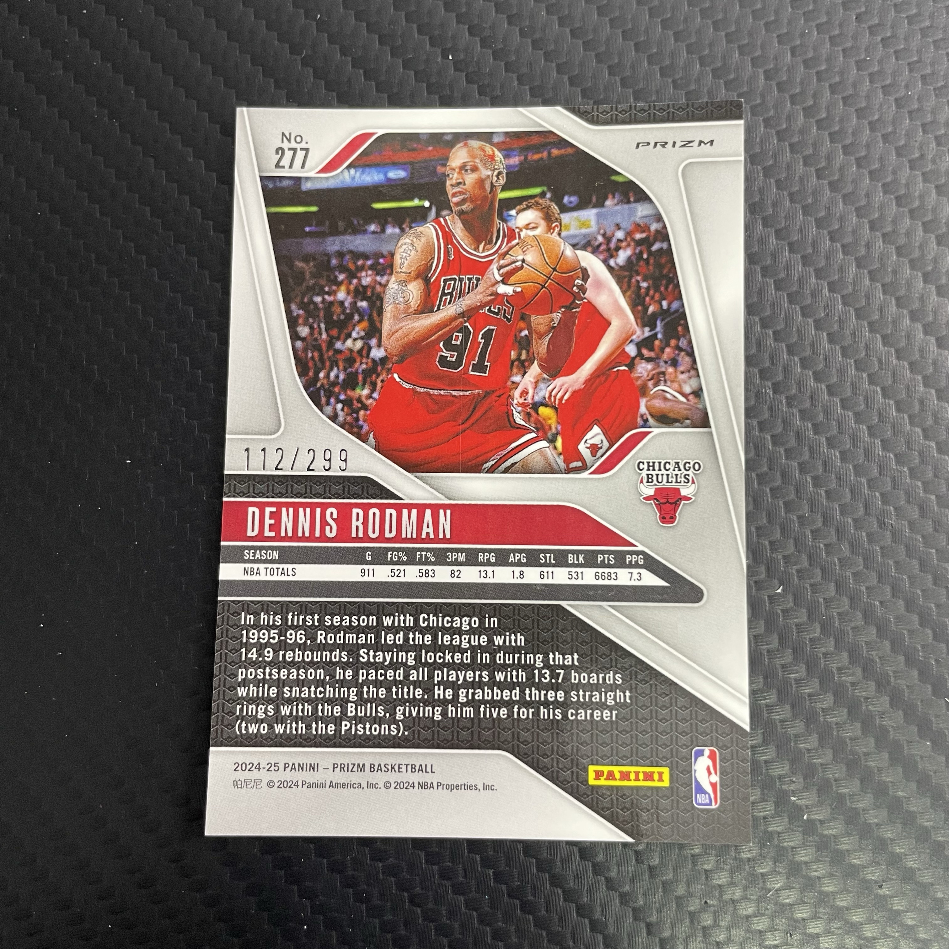 【面包拍卖】 2024-25 Panini Prizm Dennis Rodman 公牛 大虫 丹尼斯 罗德曼 折射 红波纹 变形虫折 112/299编 瑕疵如图 柚子哥