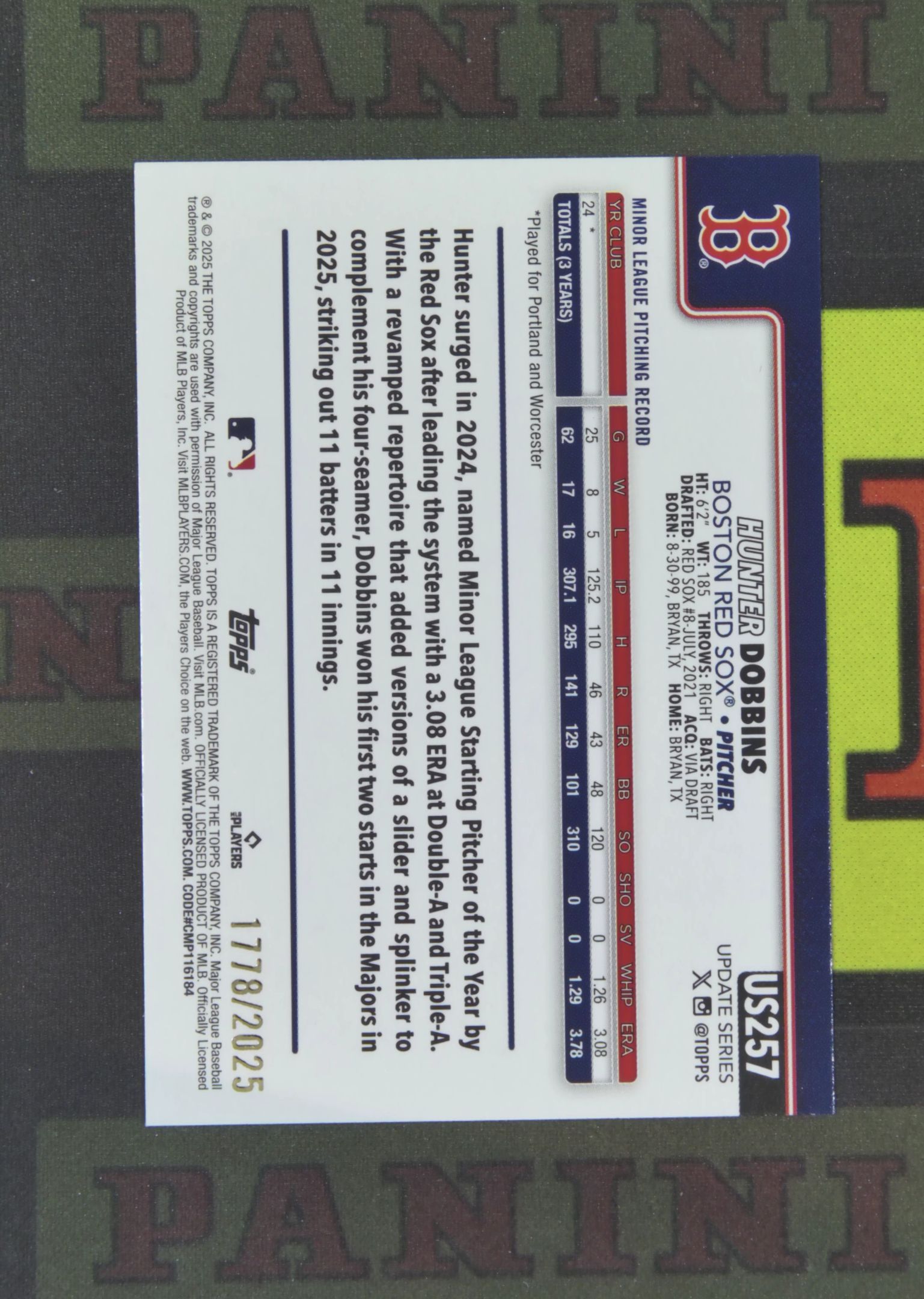 2025 Topps Update Hunter Dobbins RC Nirvana Project 亨特 多宾斯 波士顿红袜 新秀 1778/2025 金平行 年份编 卡品如图 收藏必备 吴¥