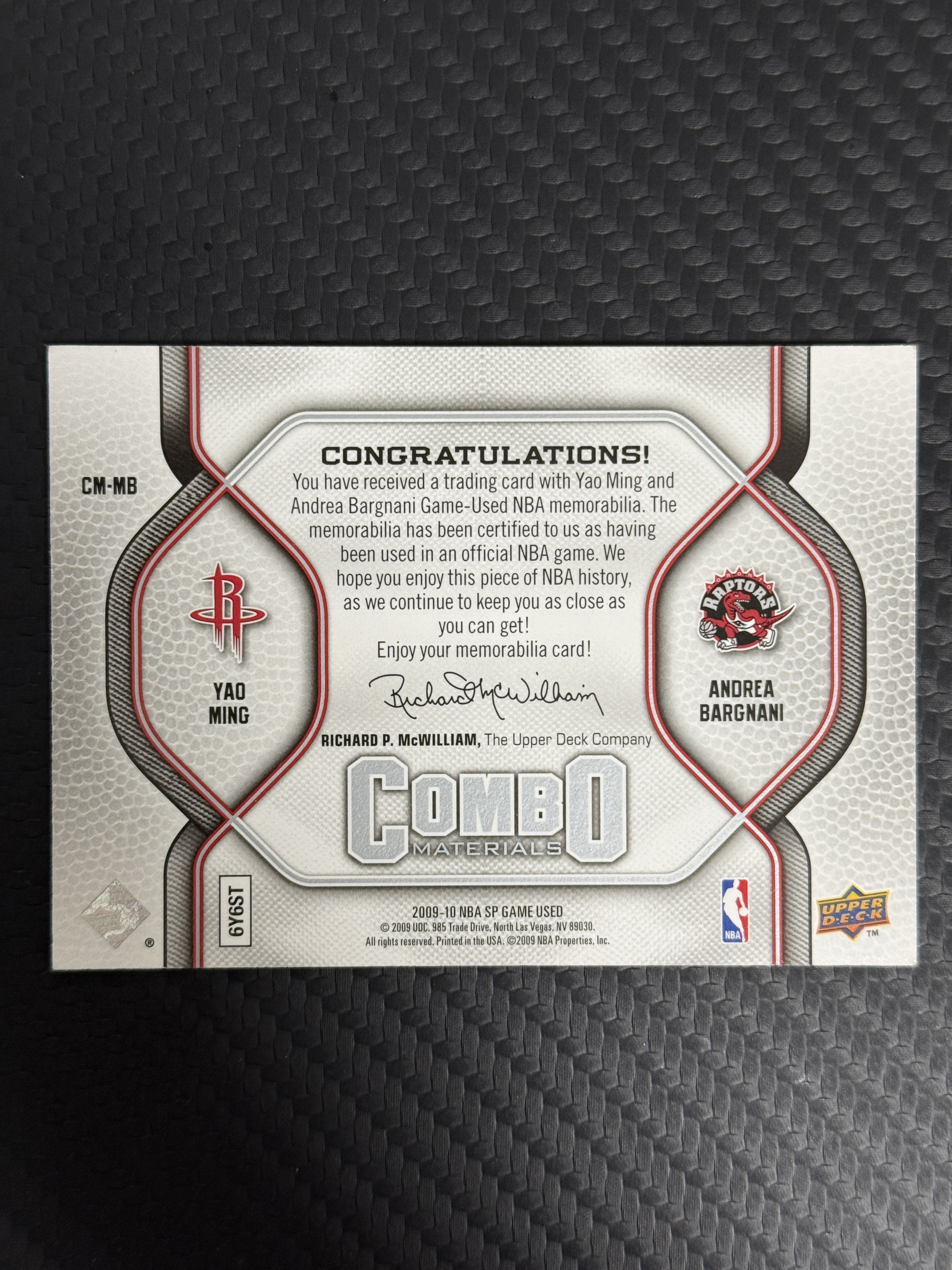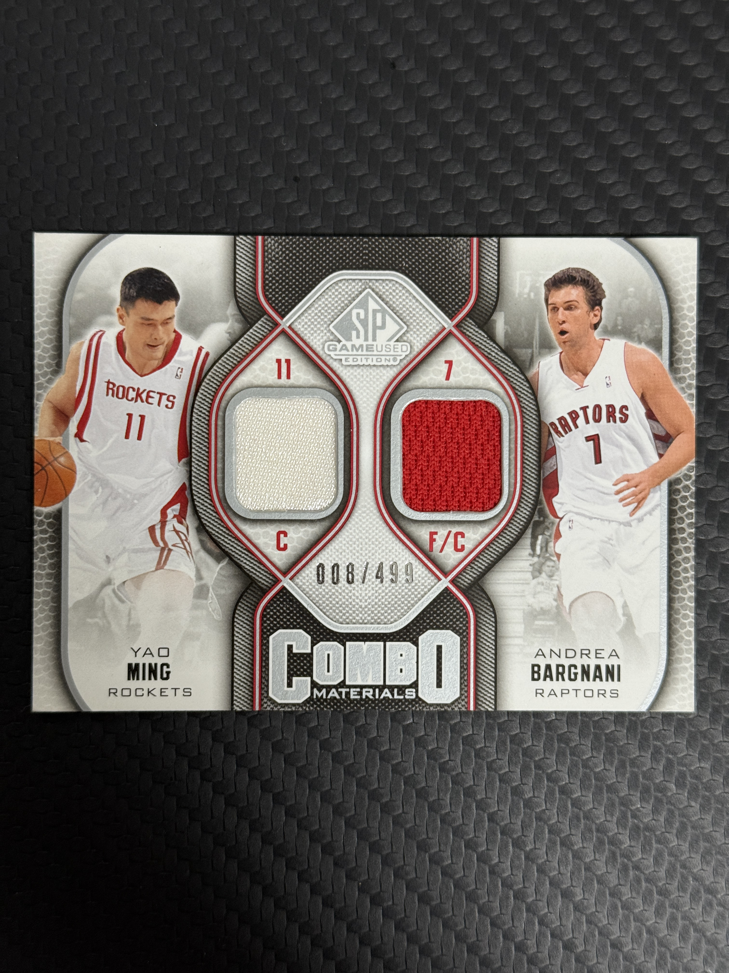 【包来拍卖】安德烈 巴格纳尼 Bargnani Yao ming 姚明 2009-10 Upper Deck 大比例 sp 008/499编 球衣切割 双窗 双人物料 猛龙 火箭 卡品如图 二八总