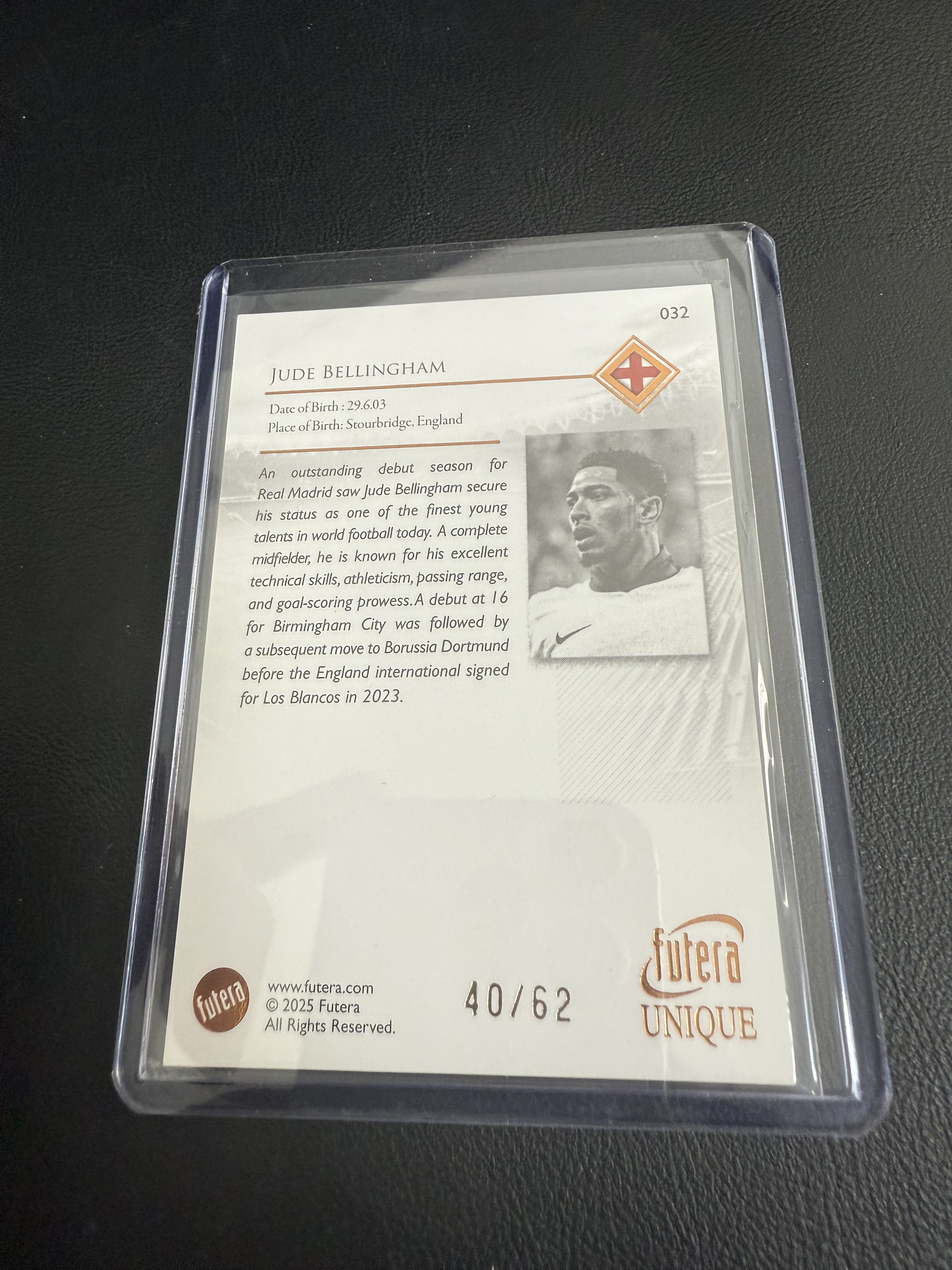![2025 Futera Unique Jude Bellingham 贝林厄姆 皇家马德里 多特蒙德 40/62编 卡品如图 只合并当日订单 介意勿拍!![金叔代拍秦月]](https://images.cardhobby.com/beaac717bcc581ba6582aa1ea82dcd671765017731312.jpg)