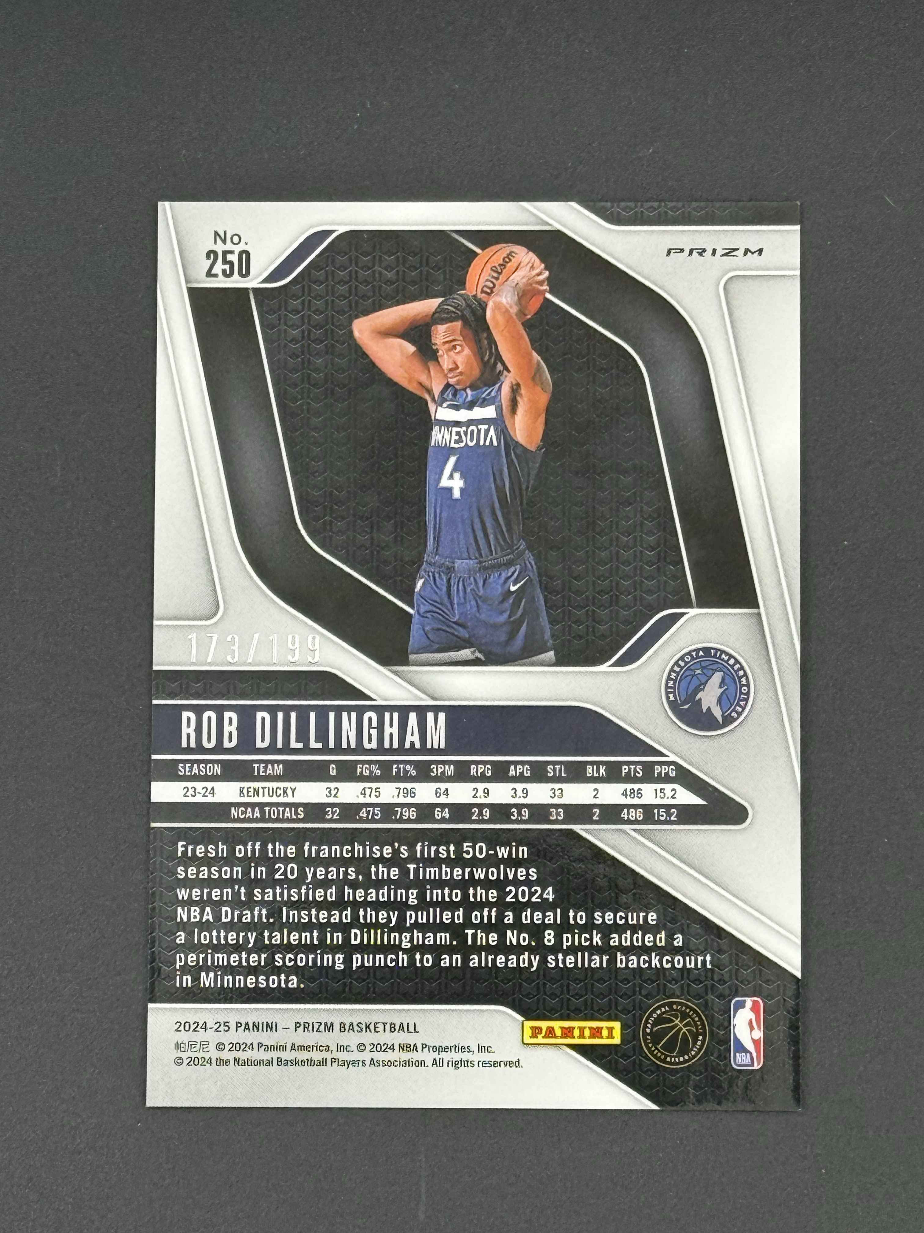 2024-25 Panini Prizm Robert Dillingham RC 罗伯特 迪林厄姆 森林狼 pz蓝折 新秀 199编 潜力新星 投资必备 卡品如图 鹿