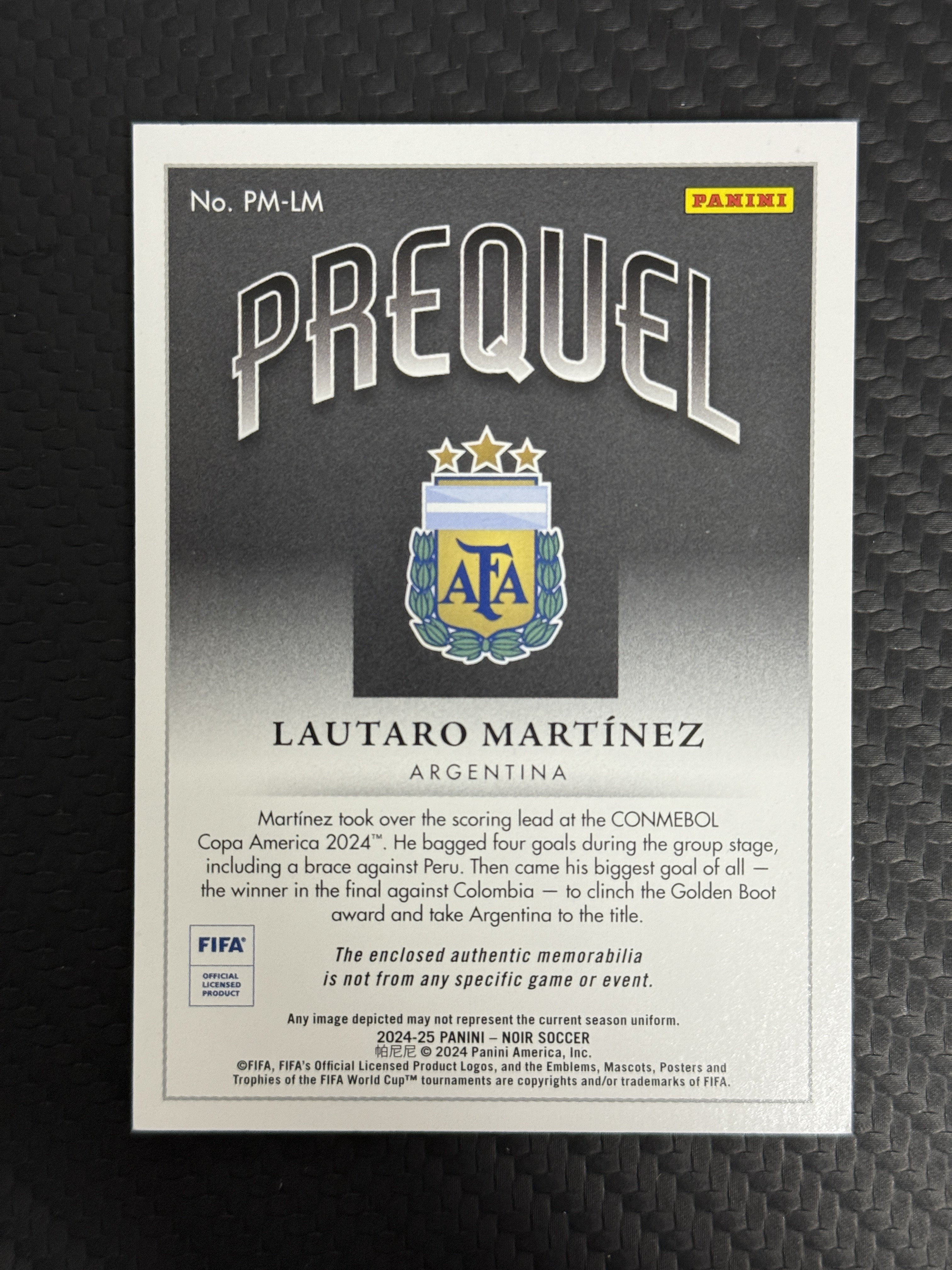 【包来拍卖】2024-25 Panini Noir 诺尔 Lautaro Martinez 阿根廷 国际米兰 劳塔罗 马丁内斯 1/10编 首编 双色物料 球衣切割 卡品如图 7