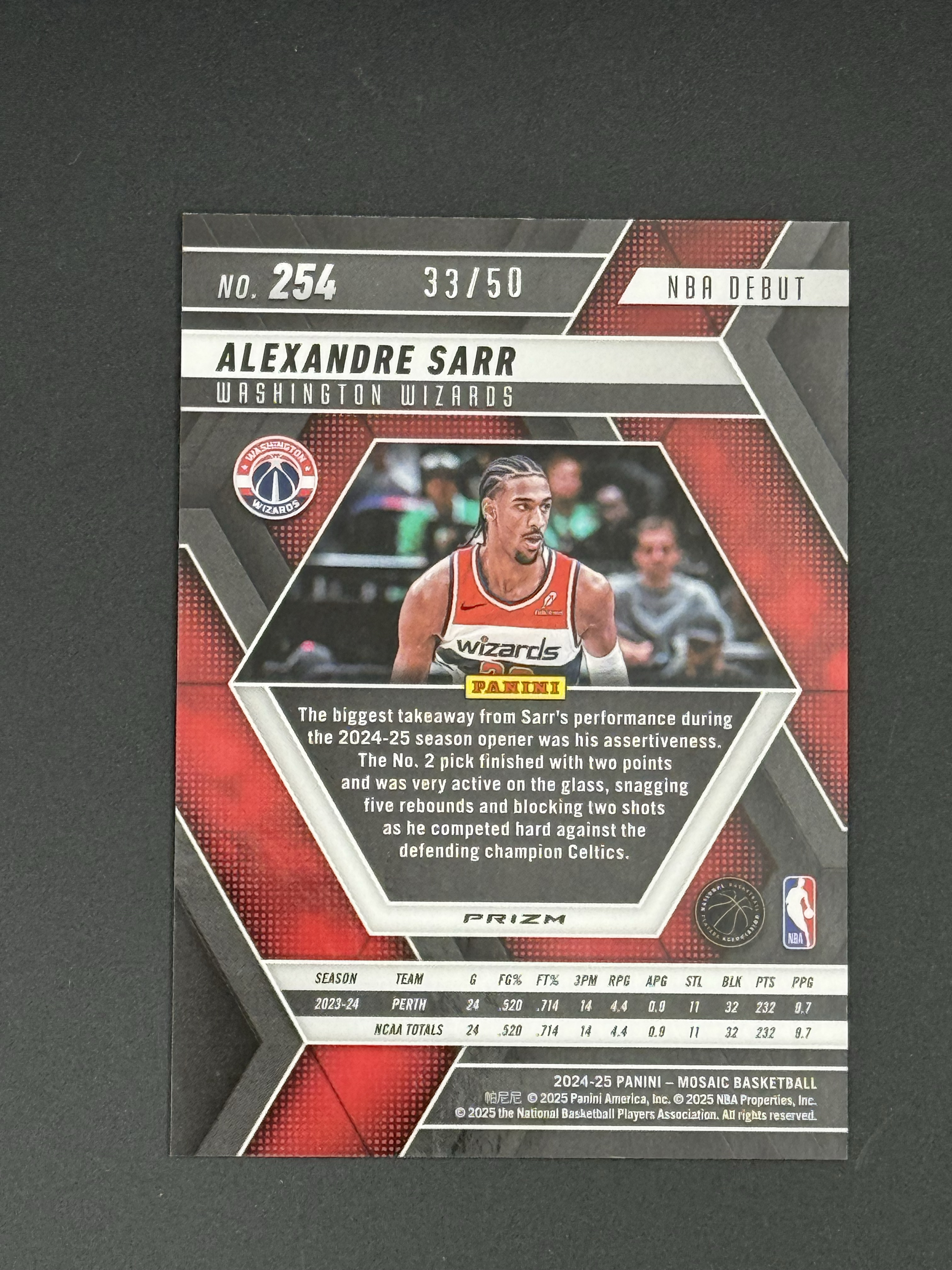 2024-25 Panini Mosaic Alex Sarr RC 马赛克 新秀 奇才 萨尔 50编 紫泡泡 首秀 卡品如图 收藏必备 I