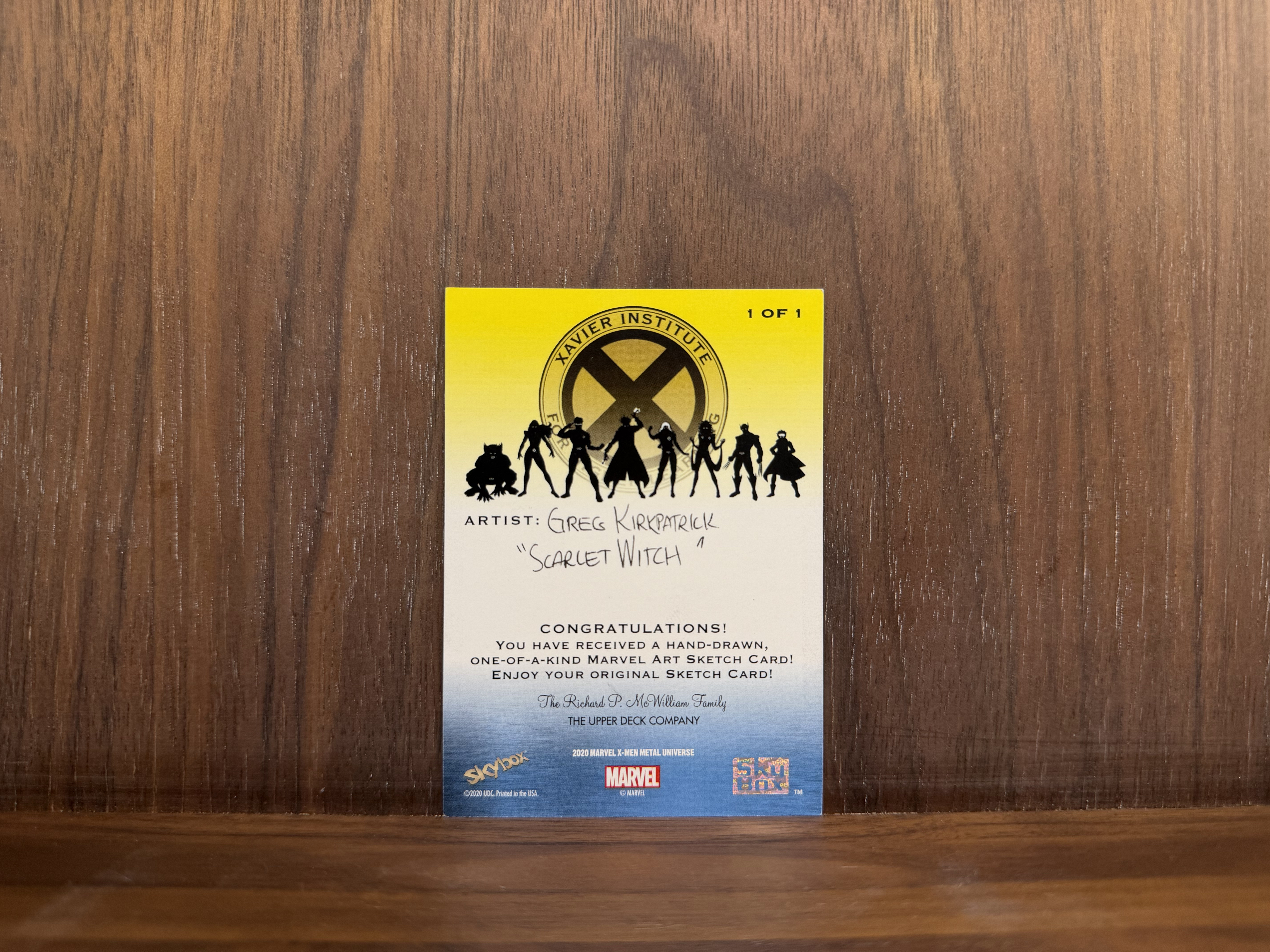 2020 Upper Deck Marvel (MCU) Scarlet Witch X-Man Metal系列,Sketch Card 手绘卡,画师Greg Kirkpatrick 1/1,绯红女巫