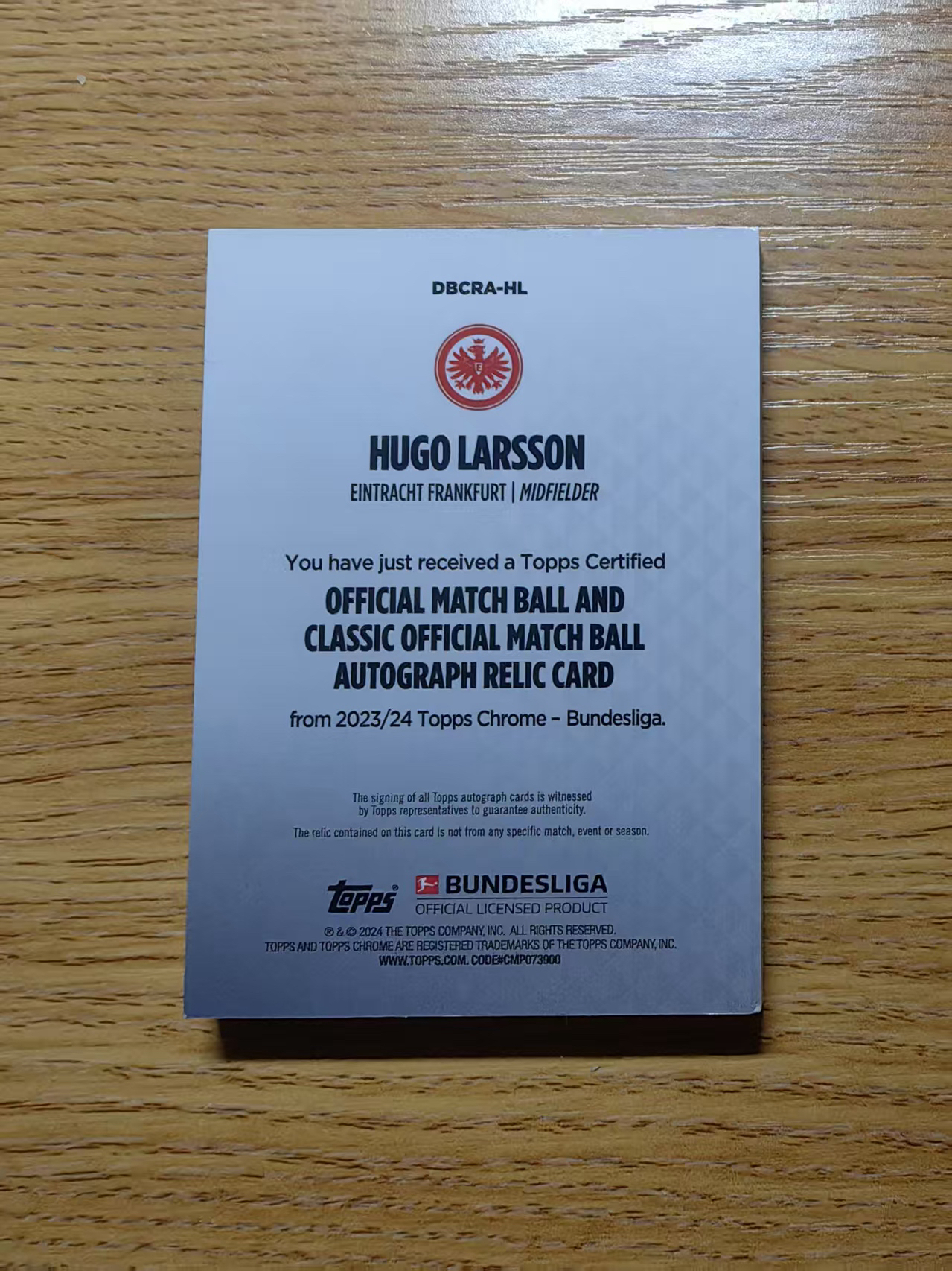 2024 Topps Chrome Hugo Larsson 胡戈拉松 拉森 雨果 拉尔森 瑞典 RC 新秀 法兰克福 40编 球皮切割 物料 签字 大比例 德甲tc 潜力无限 豪门猎物 凌风