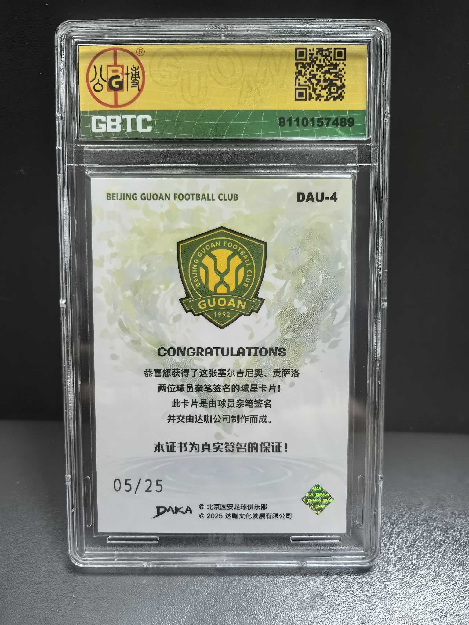 2025 DAKA AUTOGRAPH-SILVER 国安 队盒 签字 达咖 公博8. 北京国安队盒 05/25编 古加 贡萨洛 塞尔吉尼奥 双签 卡签 银平行 超级大比例 张玉宁 法比奥 张稀哲队友
