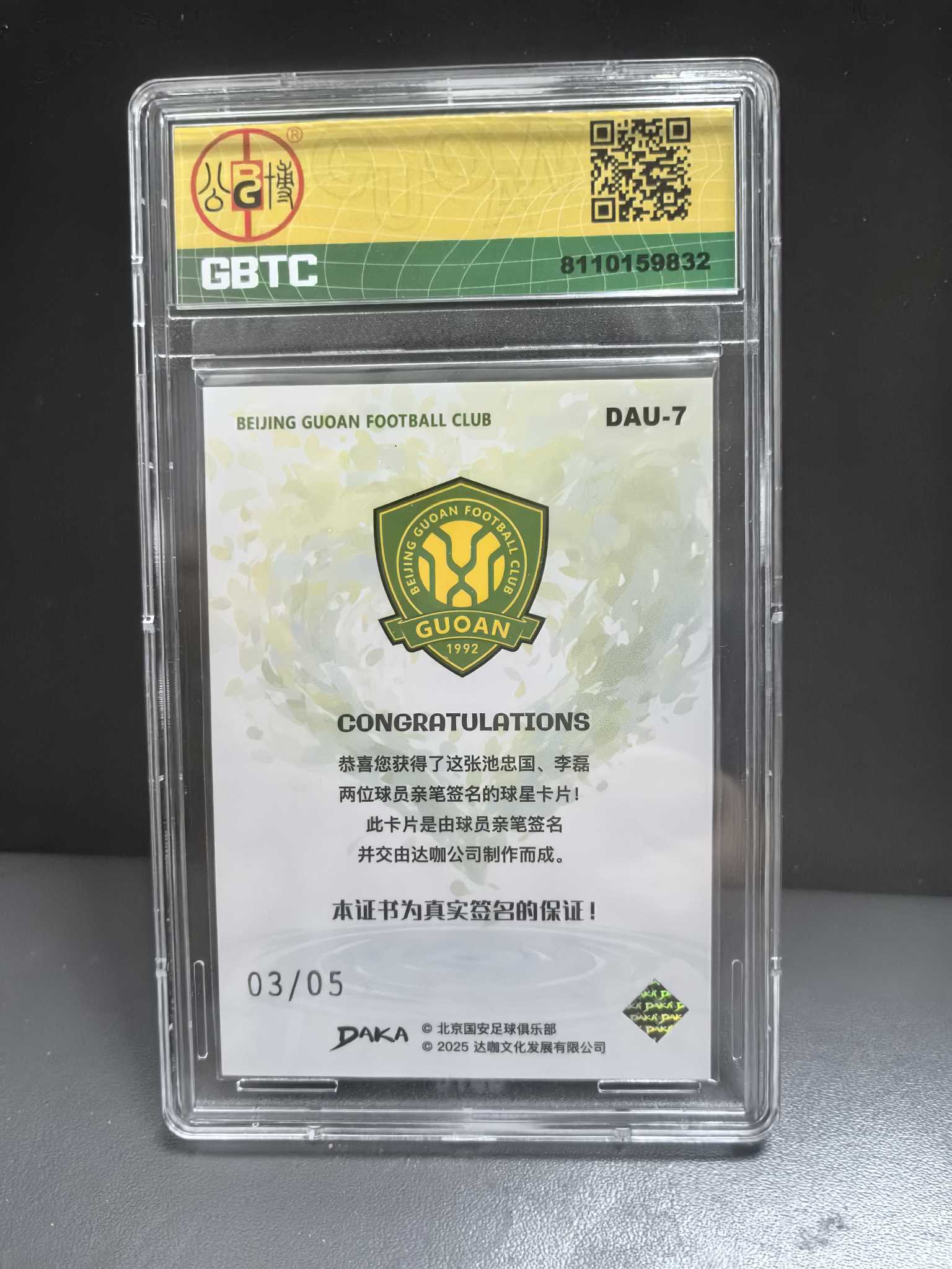 2024-25 DAKA 北京国安 池忠国 李磊 CHIZHONGGUO LILEI 2/5编 超低编 双签 公博评级完美签字10分 金色队徽 卡签 签字 张稀哲张玉宁法比奥韩佳奇侯森队友