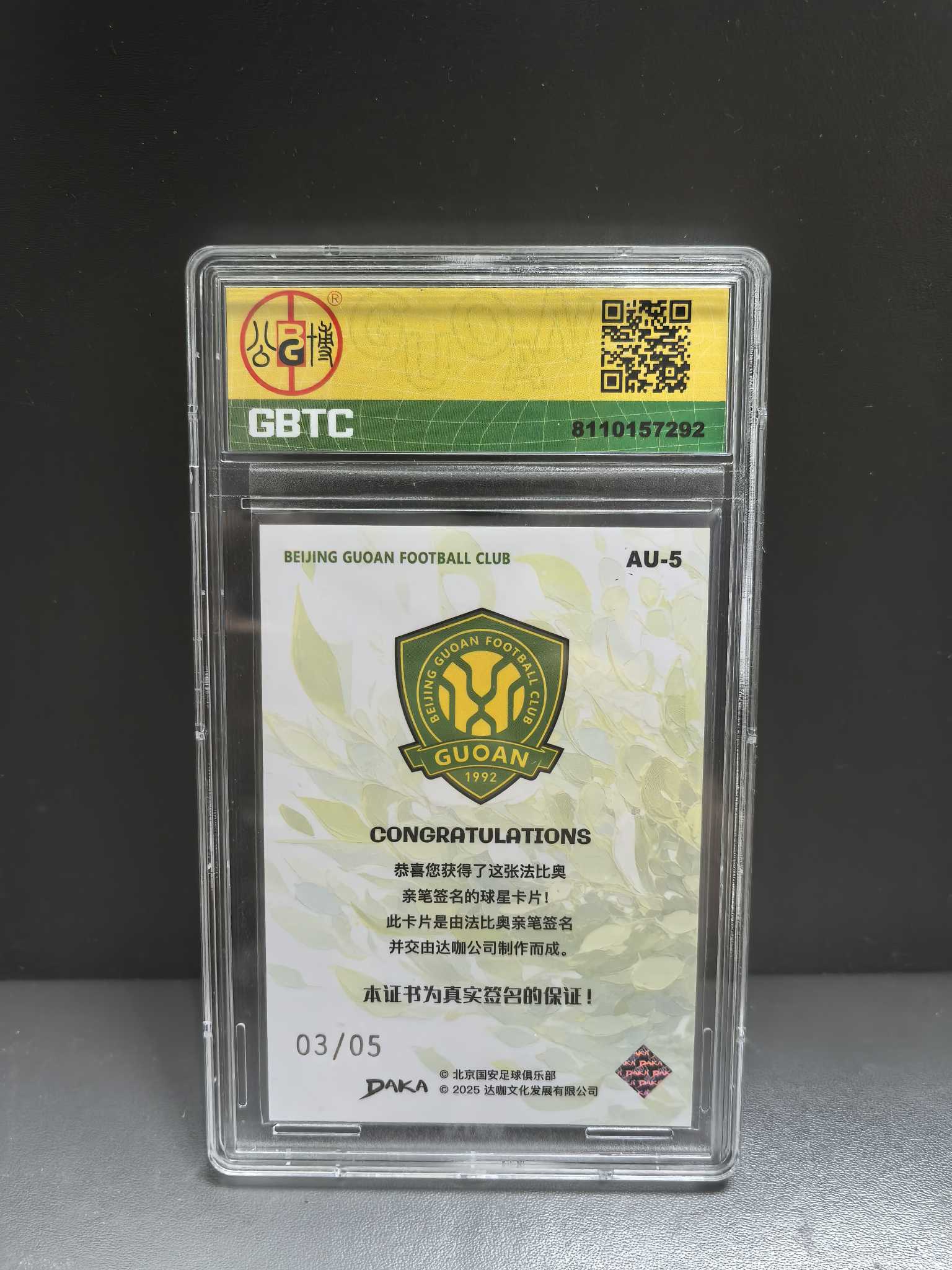 2025 DAKA 北京国安队盒 法比奥 Fabio Abreu 法比奥阿布雷乌 签字卡签 金闪 金折类似黑折红折 公博评分9签字10分 中超金靴 足协杯冠军 张稀哲 张玉宁 侯森 韩佳奇队友daka