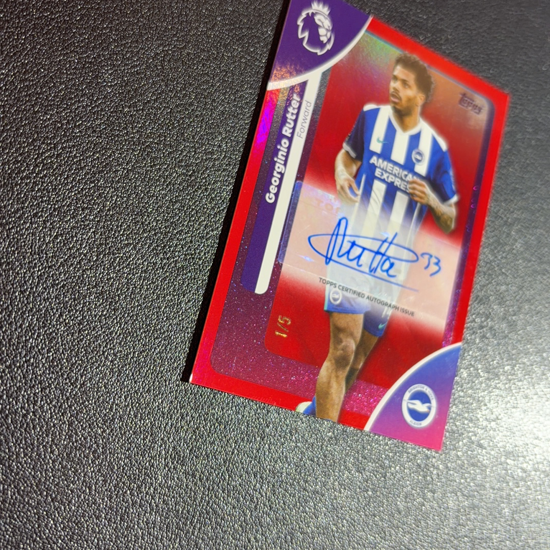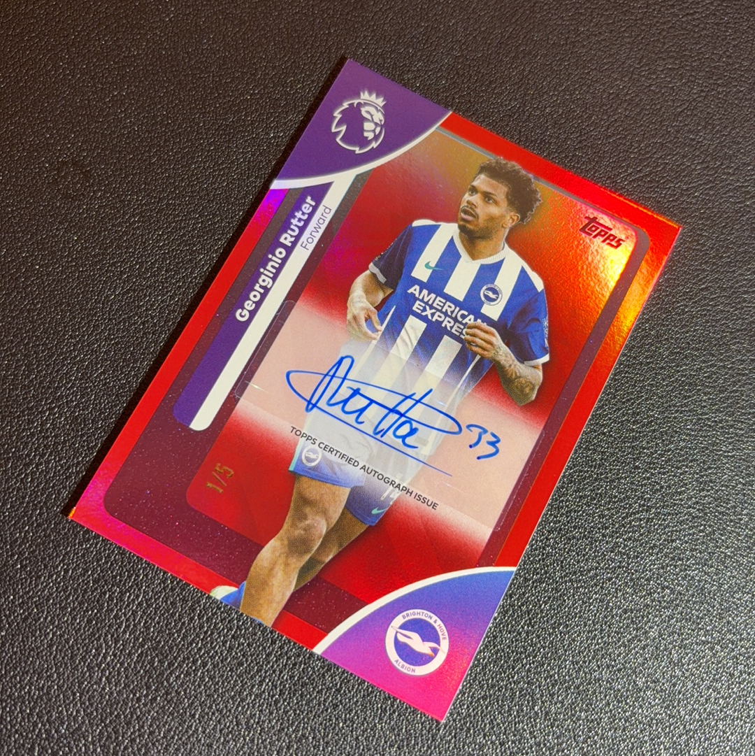 2025 Topps Premier League Georginio Rutter 乔吉尼奥 鲁特尔 布莱顿 英超 1/5编 首编 超低编 签字 贴签 背号签 红折射 角轻印看图 -S00082
