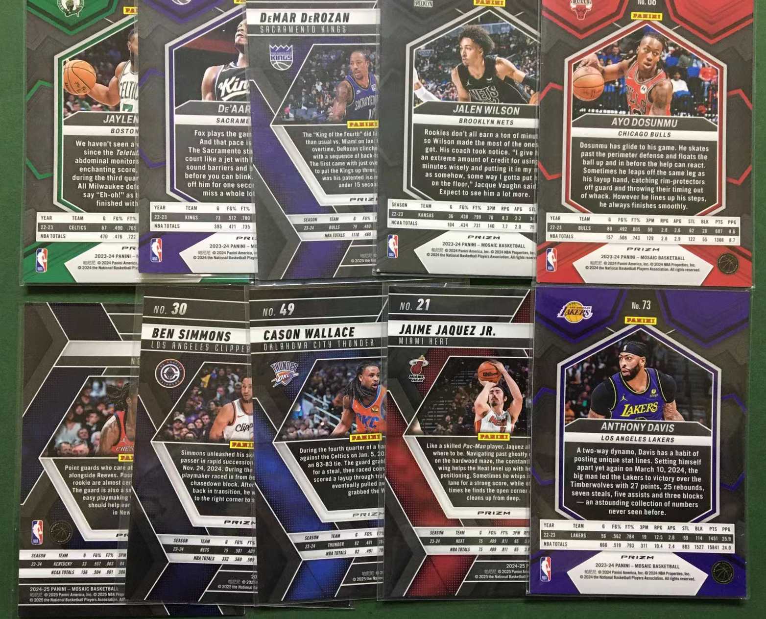 2024-25 Panini Mosaic 多人多队 RC 马赛克 新秀 安东尼戴维斯 杰伦布朗 福克斯 德罗赞 本西蒙斯等10张lot 银折 圈圈折 马赛克折 折射 base 收藏必备 不保卡品#于