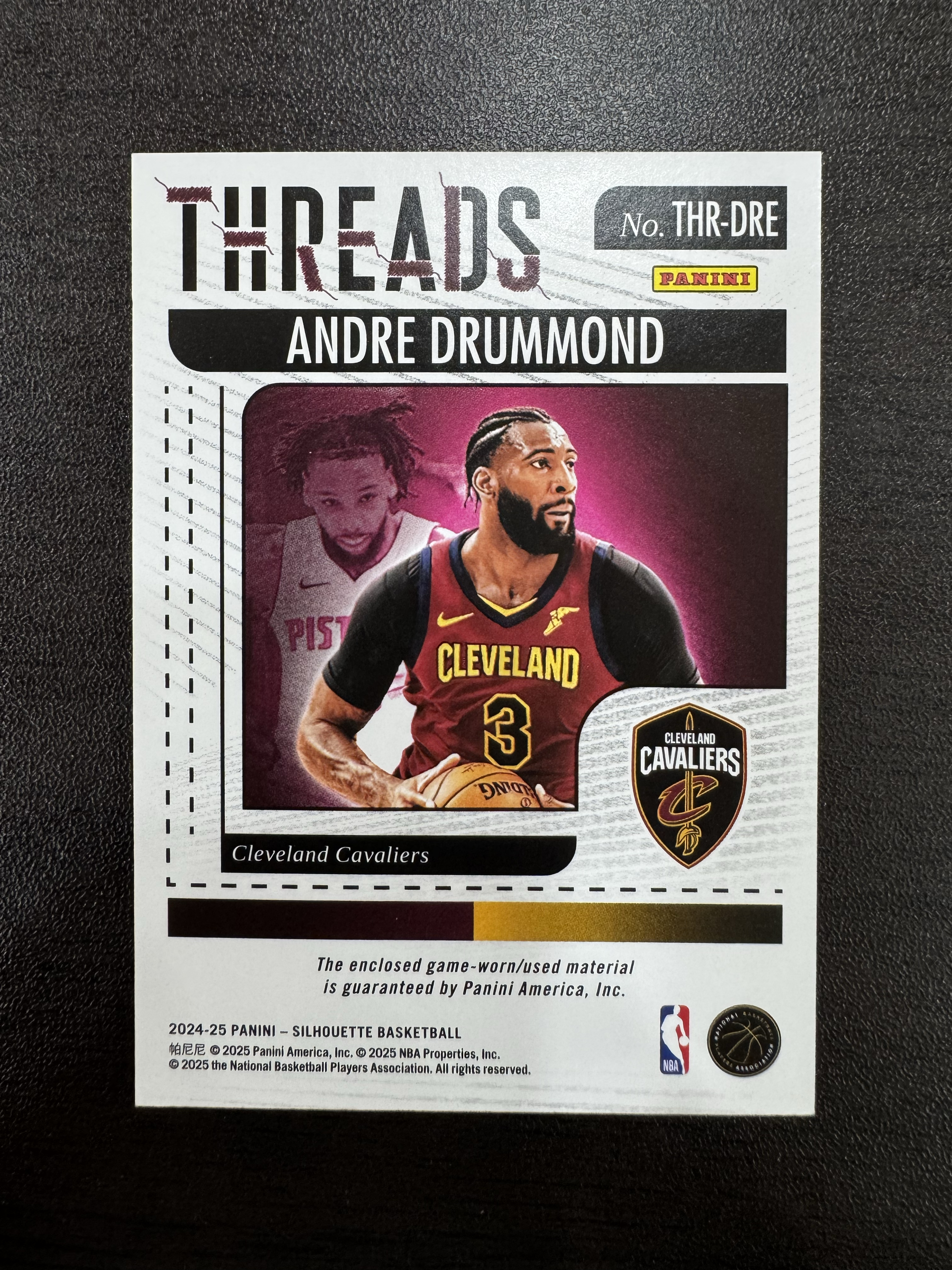 2024-25 Panini silhouette Andre Drummond 剪影 骑士 安德烈 德拉蒙德 球衣 物料 Threads 三色patch 12/49编 铜版 卡品如图 【mark】