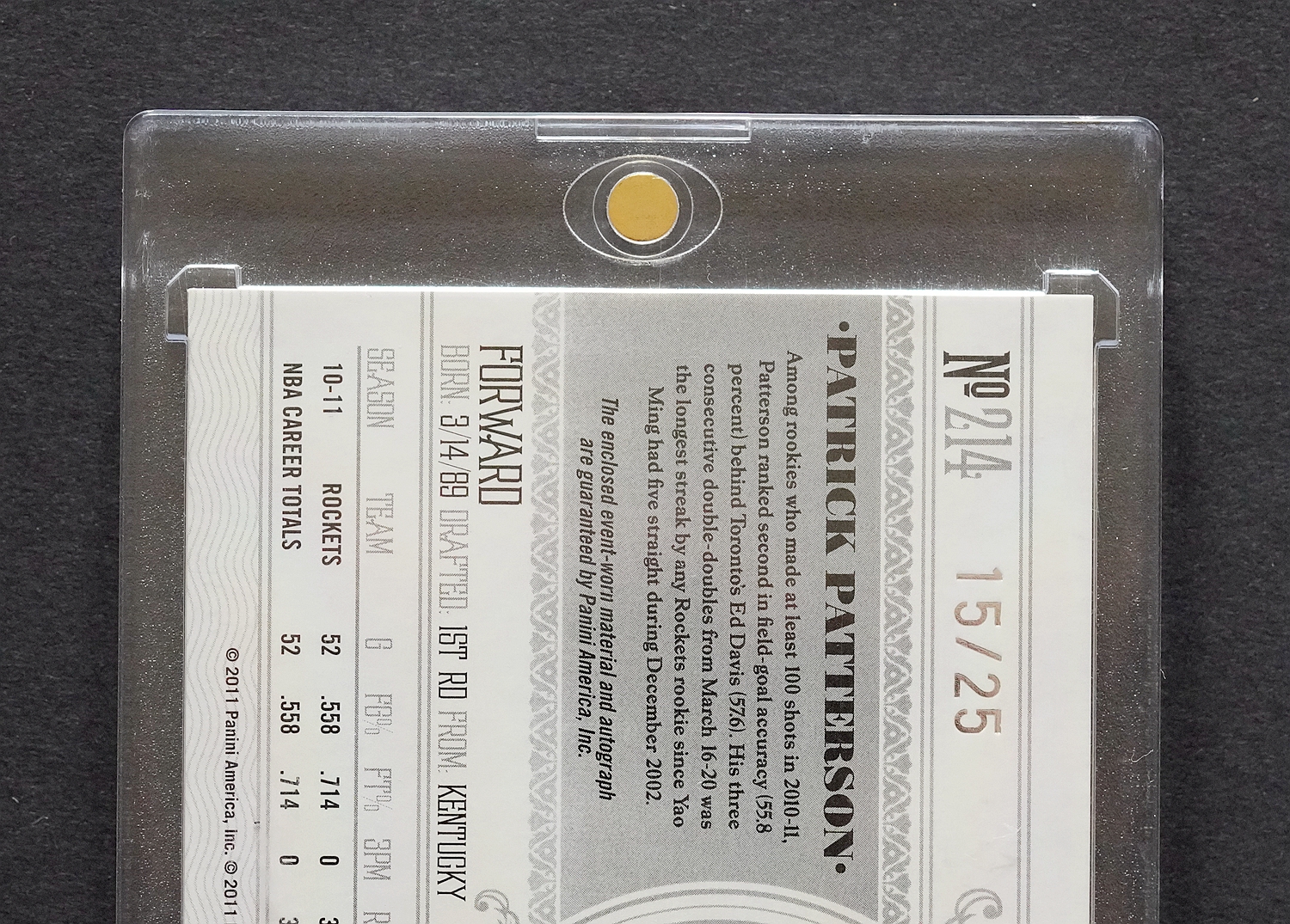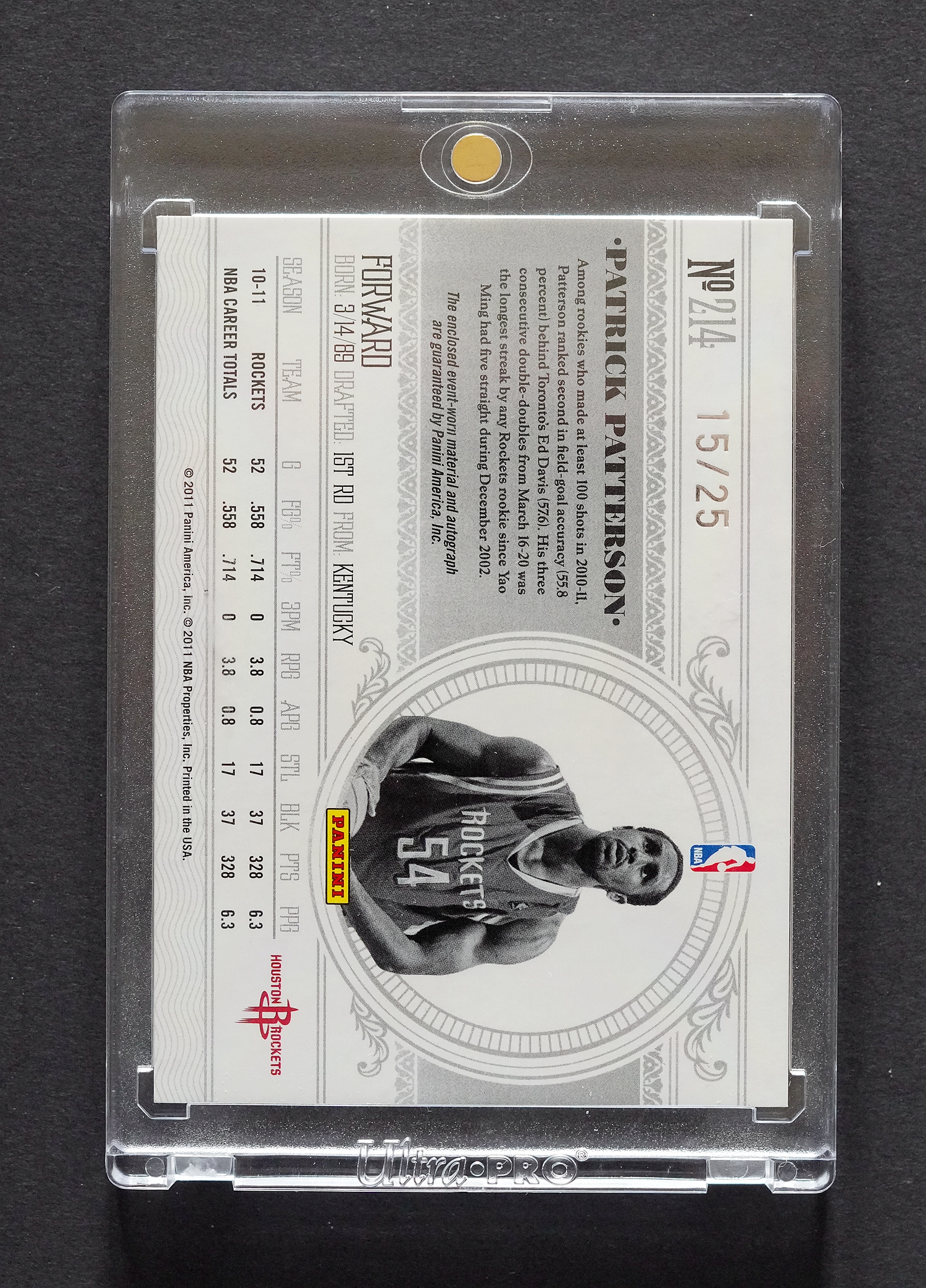 2010-11 Panini National Treasures Patrick Patterson 休斯顿火箭队 强力前锋 帕特里克 帕特森 国宝RPA 25编(15 / 25 )金版
