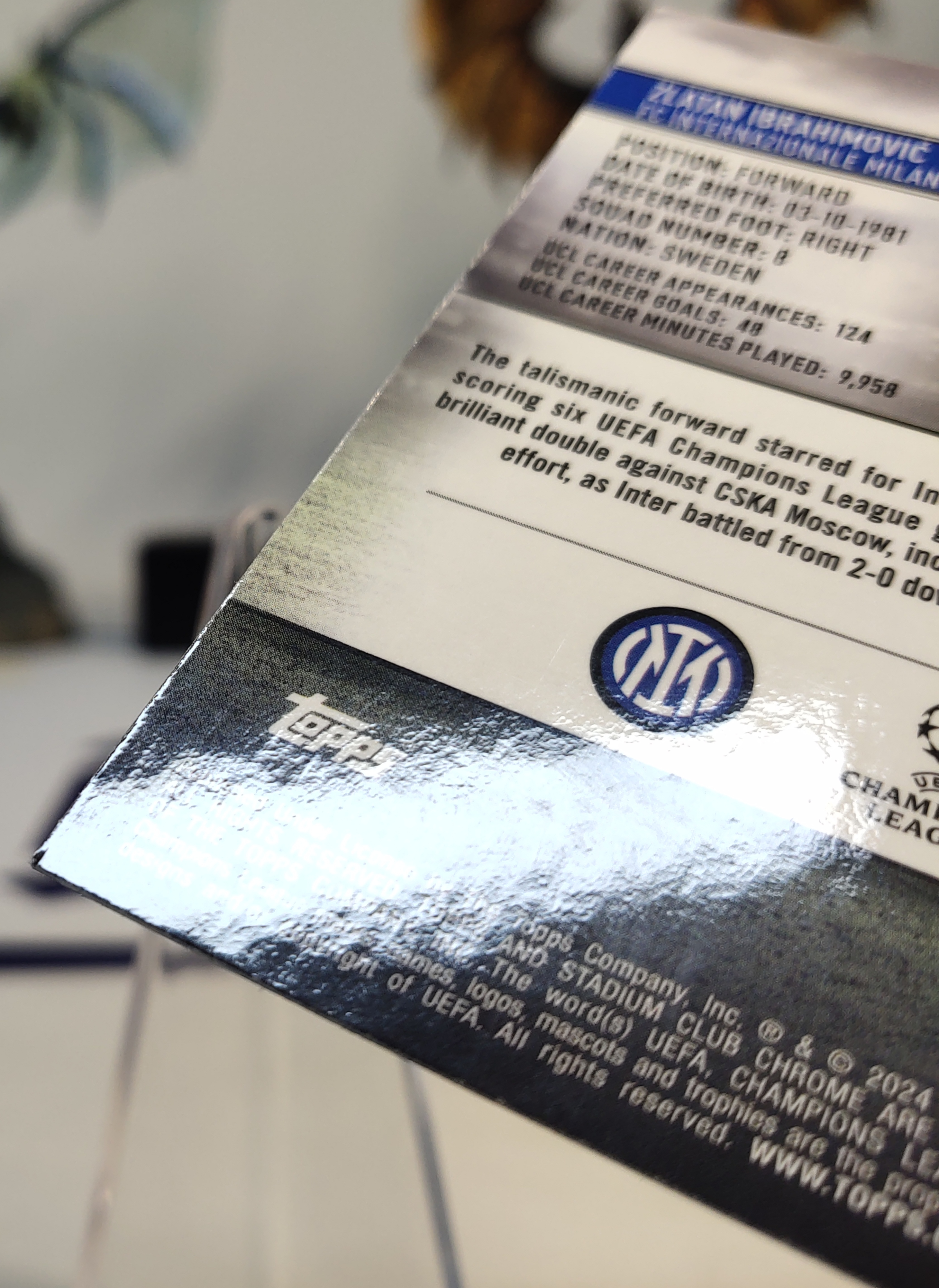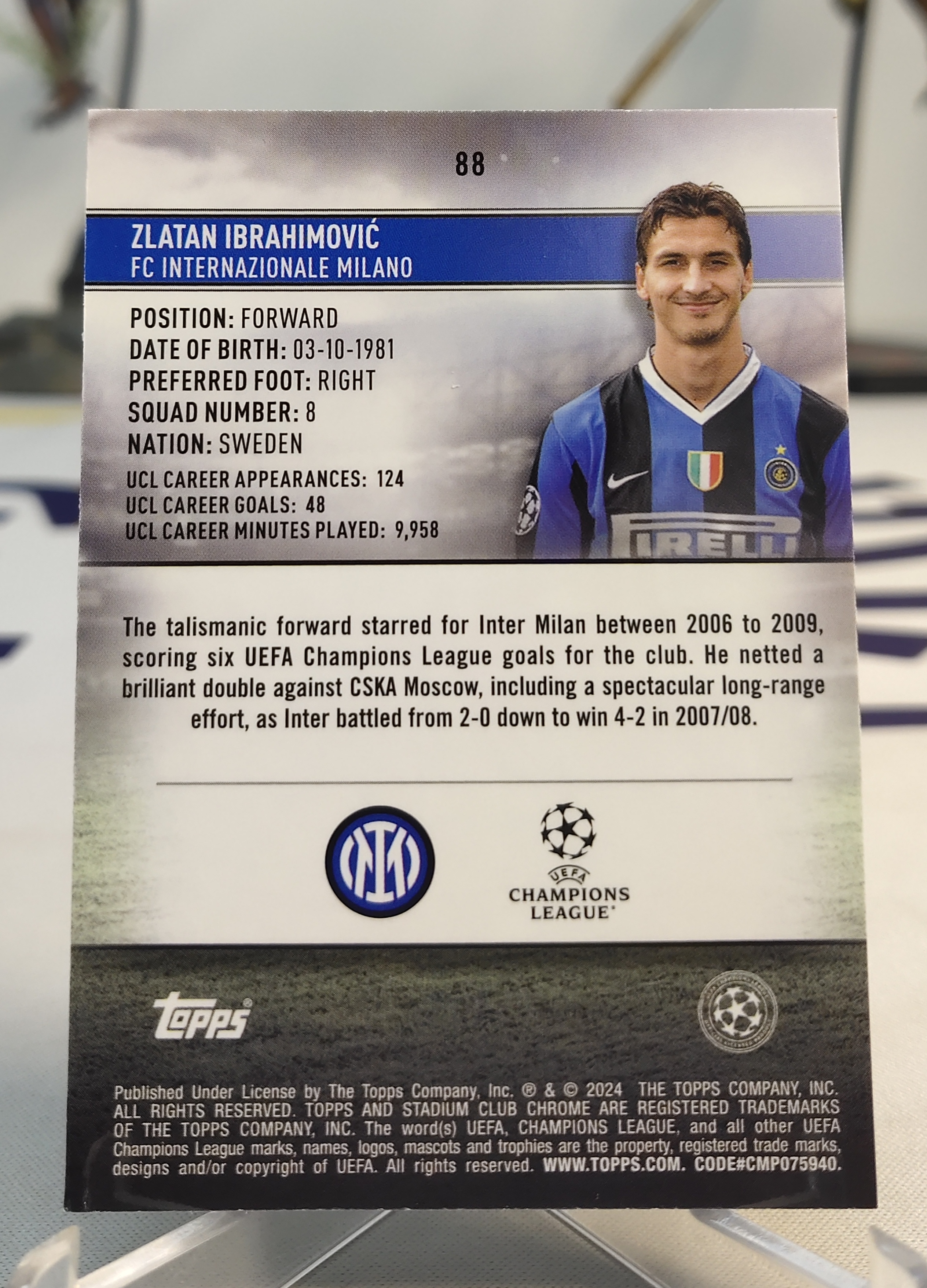 2024 Topps Stadium Club Chrome Zlatan Ibrahimovic 欧冠竞技场 兹拉坦 伊布拉西莫维奇 伊布 大奉先 98/175编 蓝折 国米 收藏必备品相见图 cwj