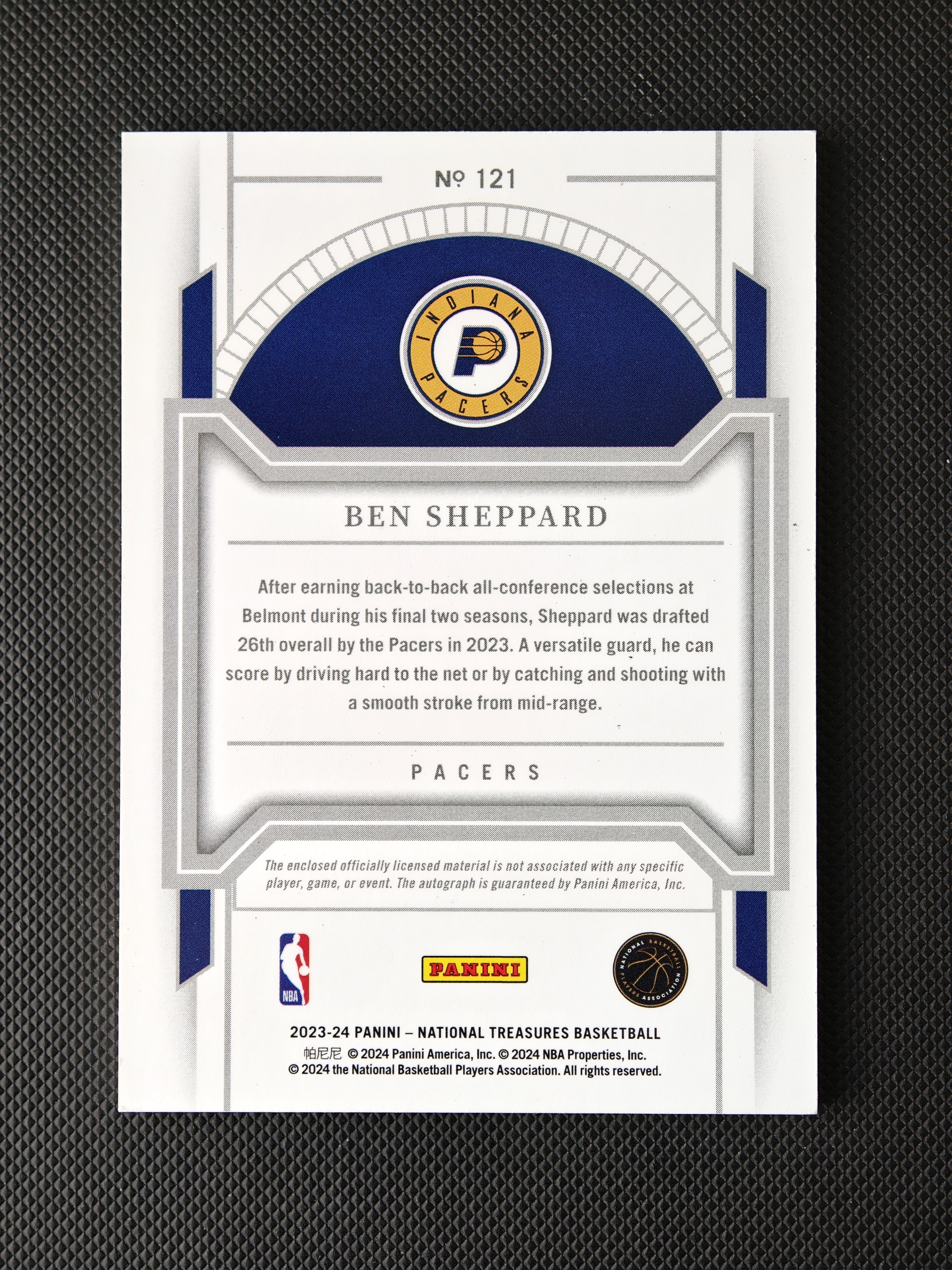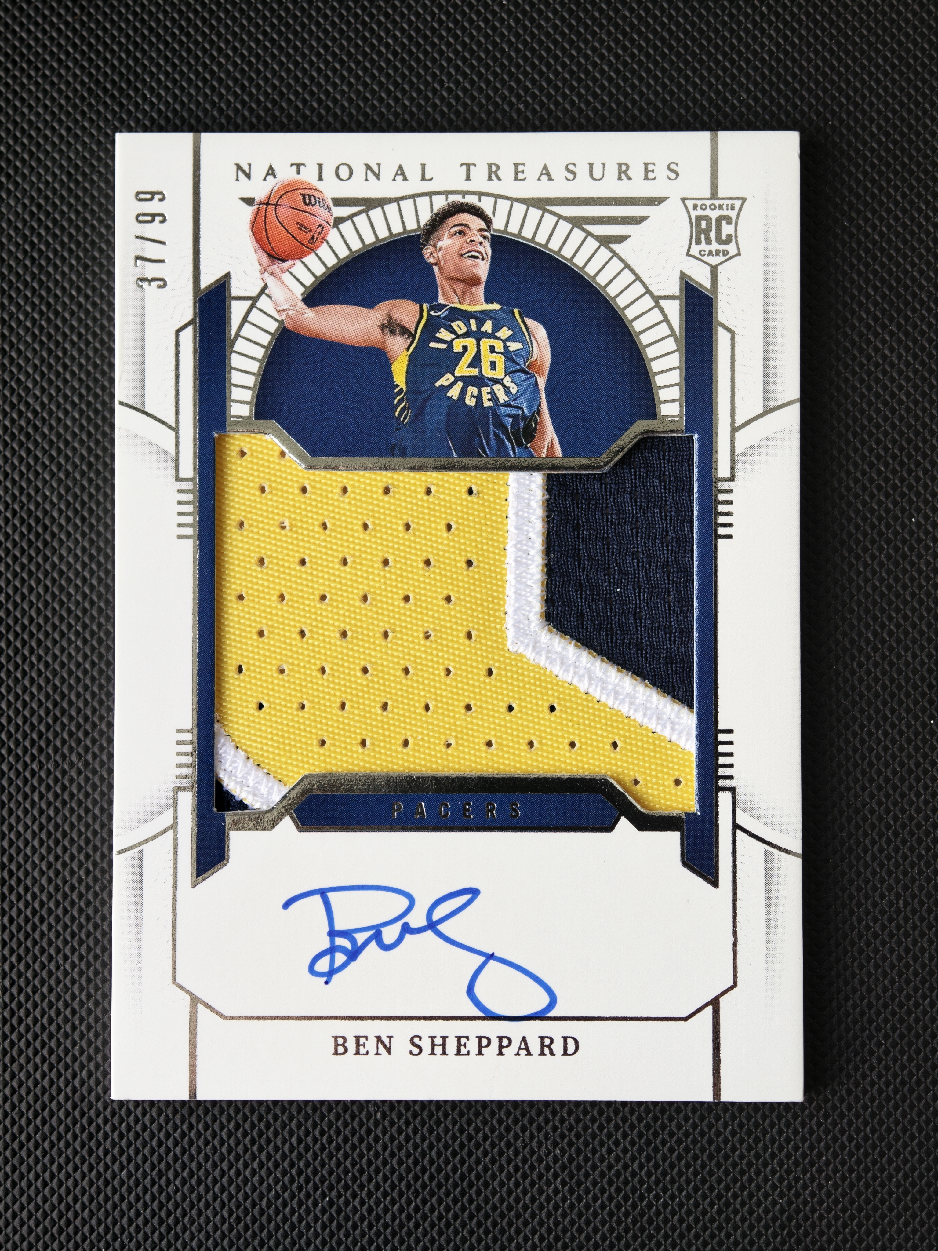 2023-24 Panini National Treasures Ben Sheppard RC 步行者首发新秀 本 谢泼德 本谢泼德 99编国宝正RPA 卡签三色切割 内史密斯受伤机会增加 卡品如图