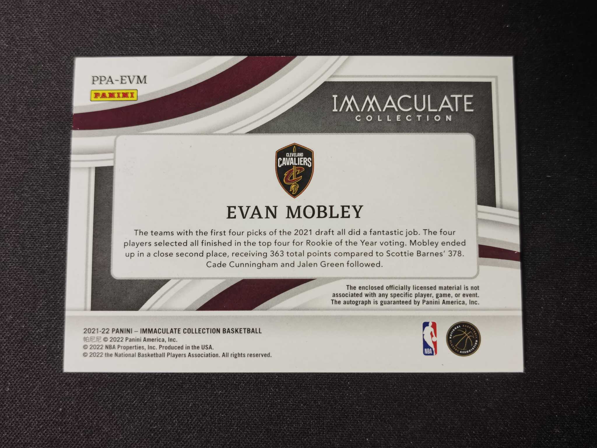 2021-22 Panini Immaculate Evan Mobley RC 埃文莫布里 莫布利!新秀年imm系列低编50编金平行大窗ppa,暴力切割,完美卡签,可搏psa高分!eBay价高!