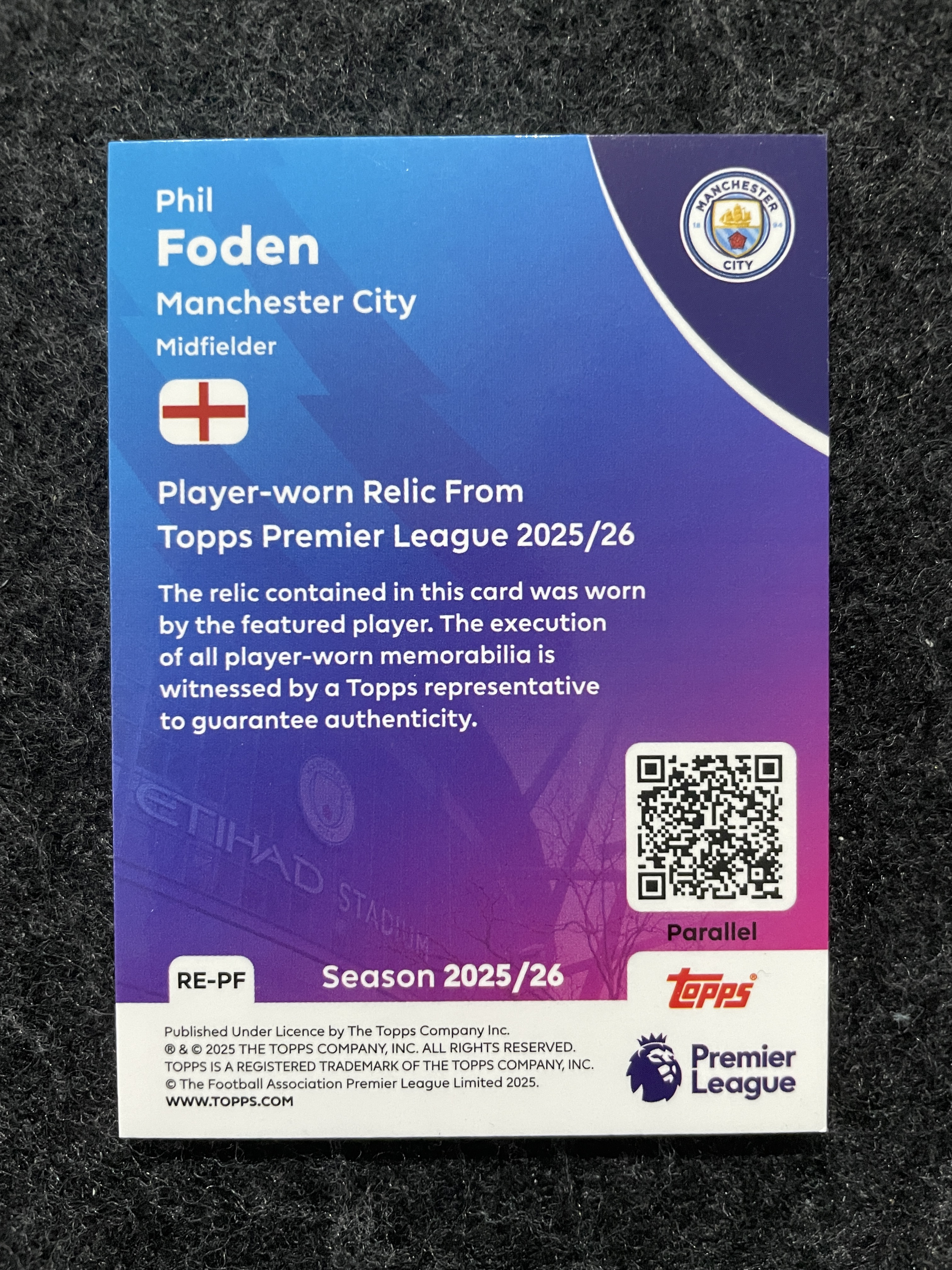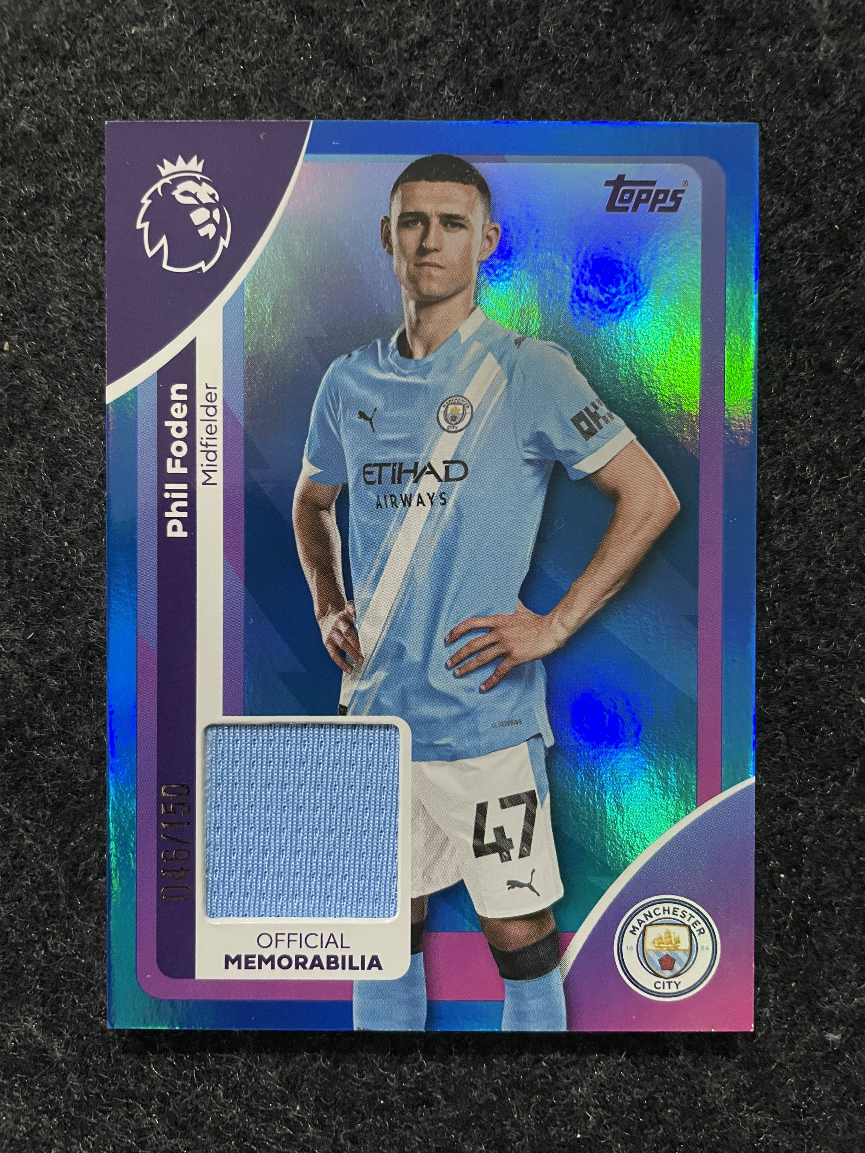 【阿木代拍258栋】2025-26 Topps Premier League 英超 曼城 Phil Foden 福登 蓝折 046/150编 亲穿球衣切割 实物物料 英格兰