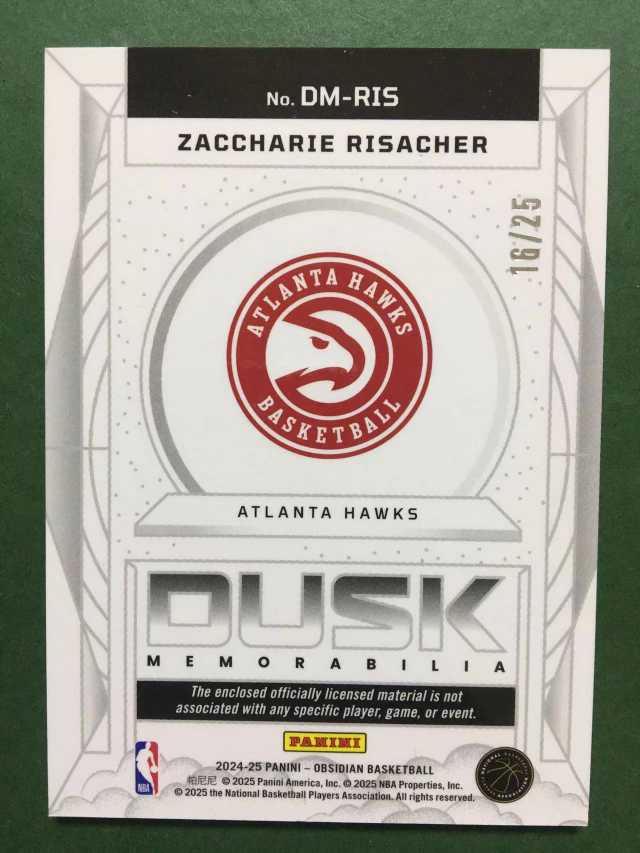 2024-25 Panini Obsidian Zaccharie Risacher RC 黑曜石 新秀 老鹰 状元 里萨谢 25编 低编 绿折 三色球衣暴力切割 DUSK 谢泼德同届 卡品如图#叔