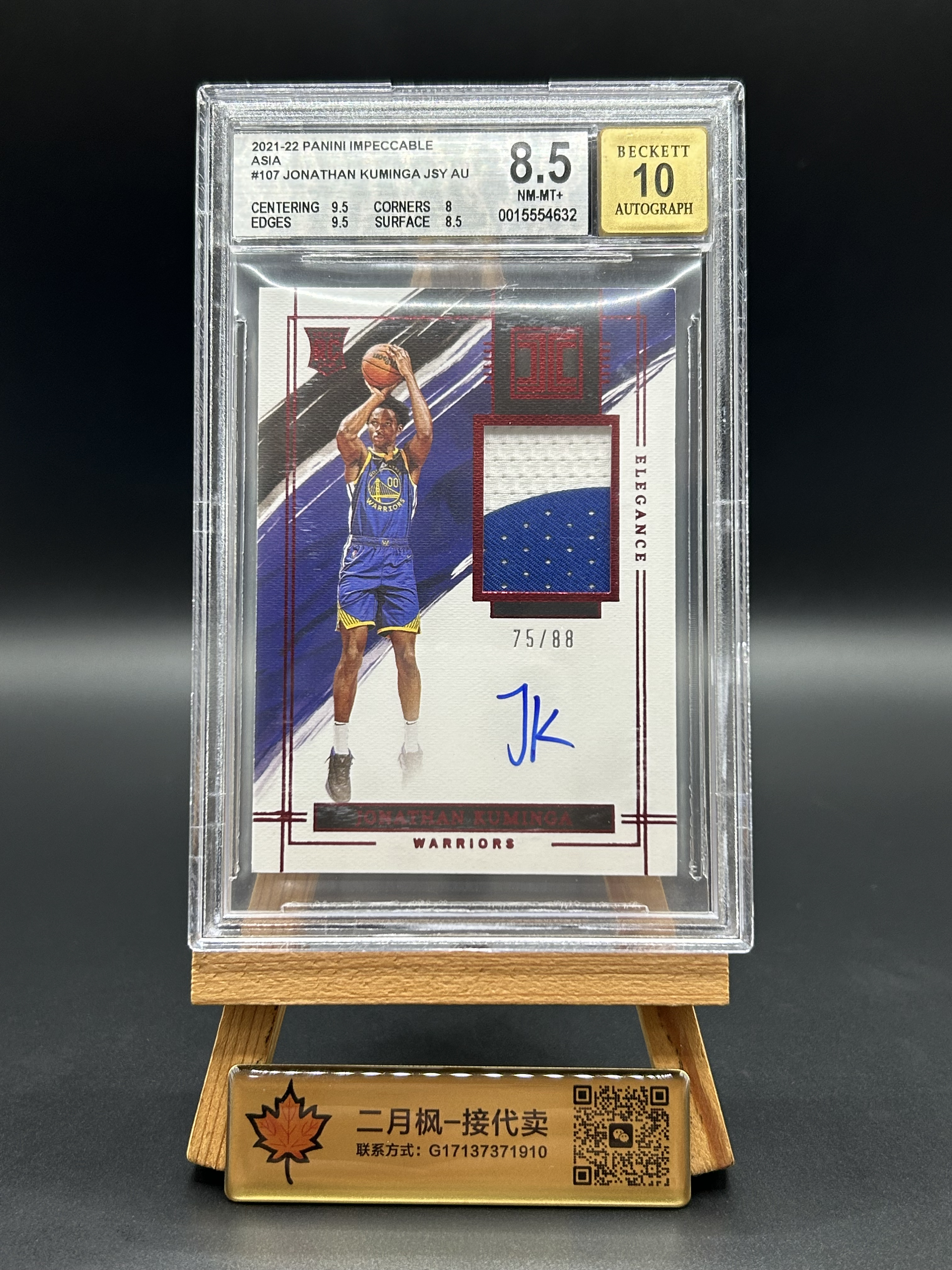 【二月枫-承接代卖】2021-22 帕尼尼 Impeccable 小真金白银 勇士 乔纳森 库明加 新秀RC 签字 RPA 88编 暴力球衣切割 Patch 红版卡签 BGS8.5/10分 #CWQ