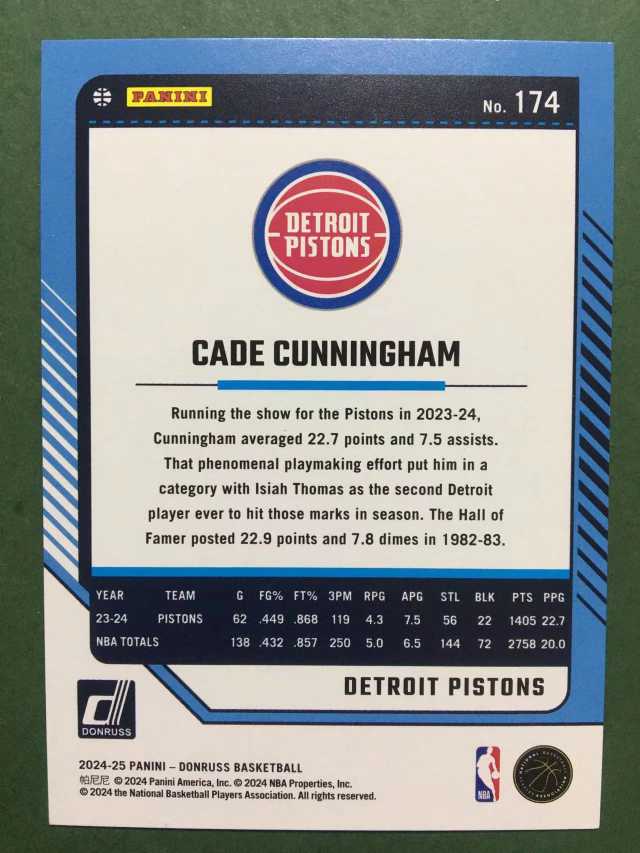 2024-25 Panini Donruss Cade Cunningham 杜蕾斯 活塞 凯德 康宁汉姆 坎宁安cc 85编 蓝烟花折 蓝折 折射 base 状元 新赛季爆发 专收必备 卡品如图#S