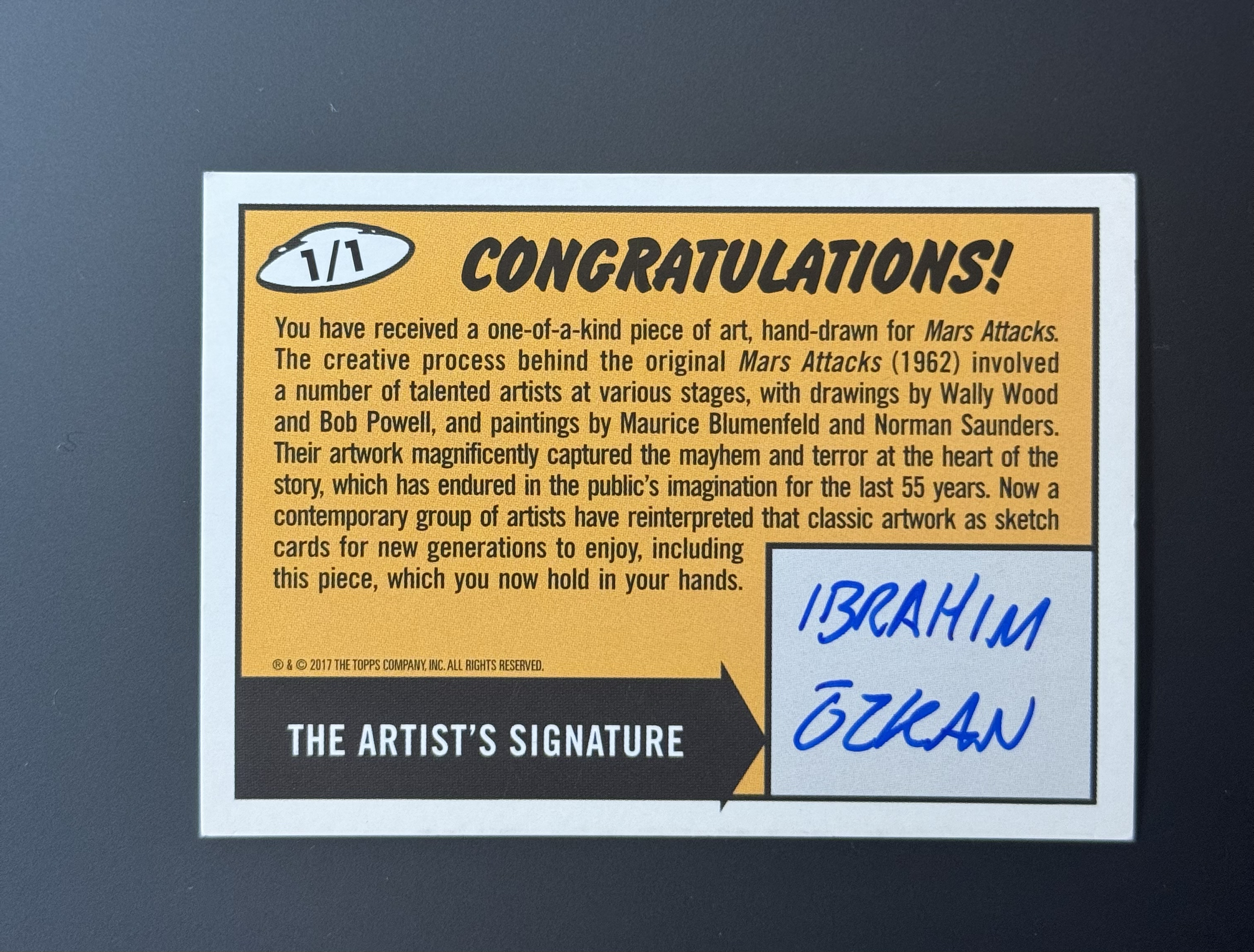 2017 Mars Attacks! Topps 火星攻击复仇 火星人玩转地球 官卡 手绘 绝版 1/1 1编1 知名画师签字 大比例 稀有