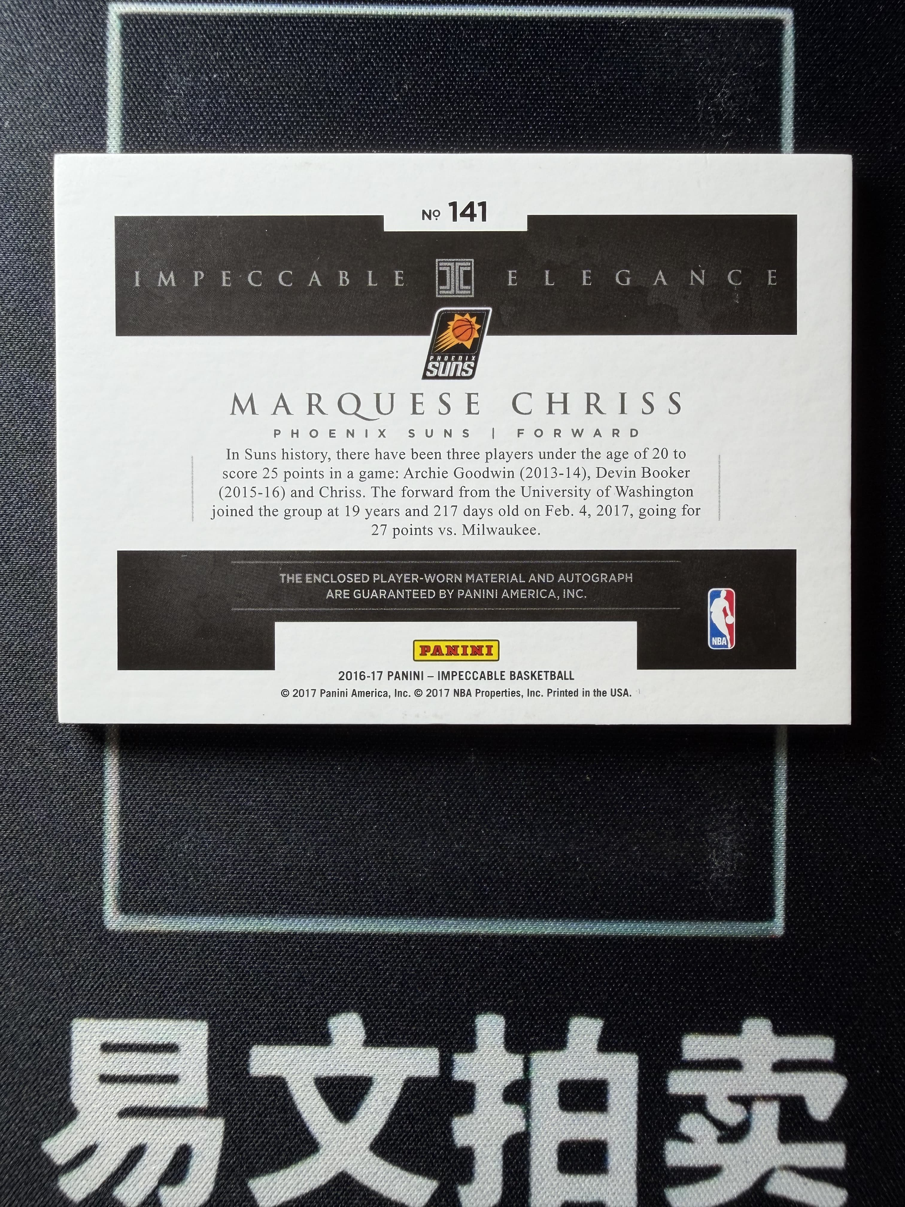 【易文拍卖 超级回款】2016-17 Panini Impeccable 小真金 MARQUESE CHRISS 马基斯 克里斯 太阳 RC新秀 25编 卡签字签名 patch球衣物料 #L315