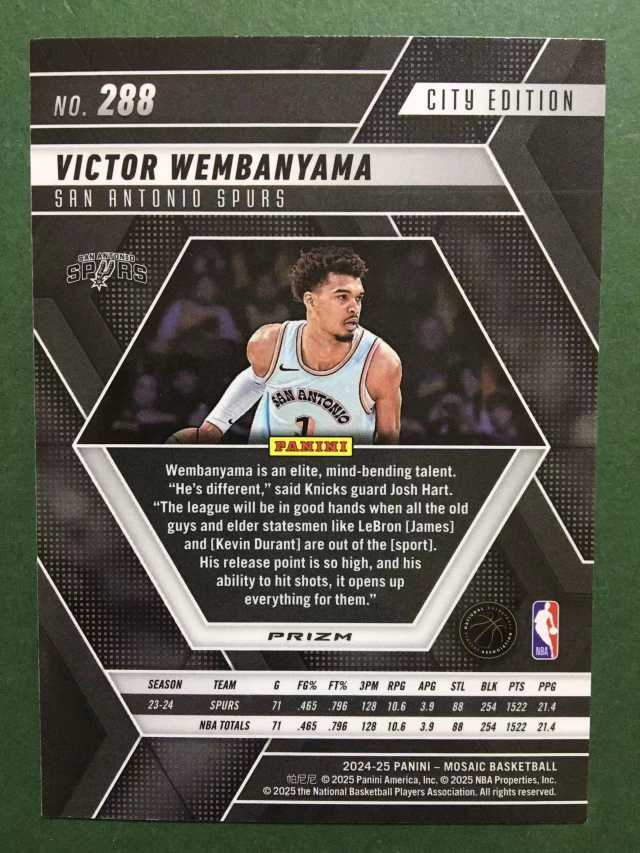 2024-25 Panini Mosaic Victor Wembanyama 马赛克 马刺 状元 文班亚马 外星人 银折 CITY EDITION 城市版base 卡斯尔 哈珀队友 卡品如图#纪