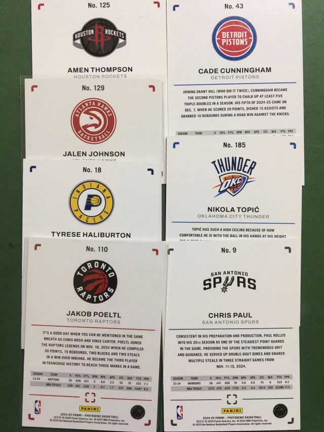 2024-25 Panini Photogenic 多队多人 RC 新秀 雷霆 托皮齐 活塞 cc坎宁安 火箭 阿门 马刺 保罗 老鹰 杰伦约翰逊等7张lot base 选图超帅 凑套必备 不保卡品