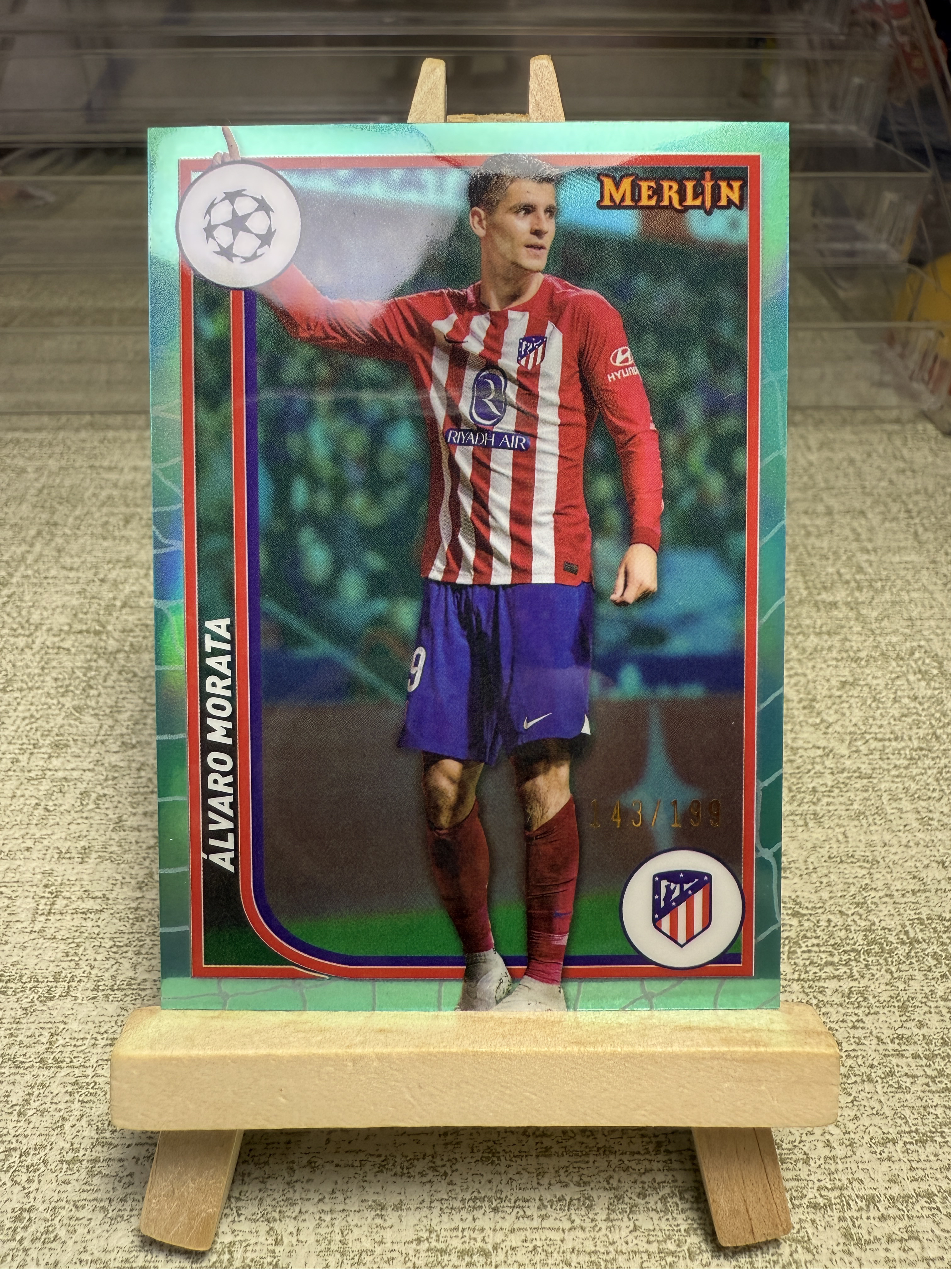 2024 Topps Merlin chrome Alvaro Morata 阿尔瓦罗 莫拉塔 西班牙 马竞 143/199编 青折 梅林 欧冠 欧战 米兰 折射 带编 【白昼问号】