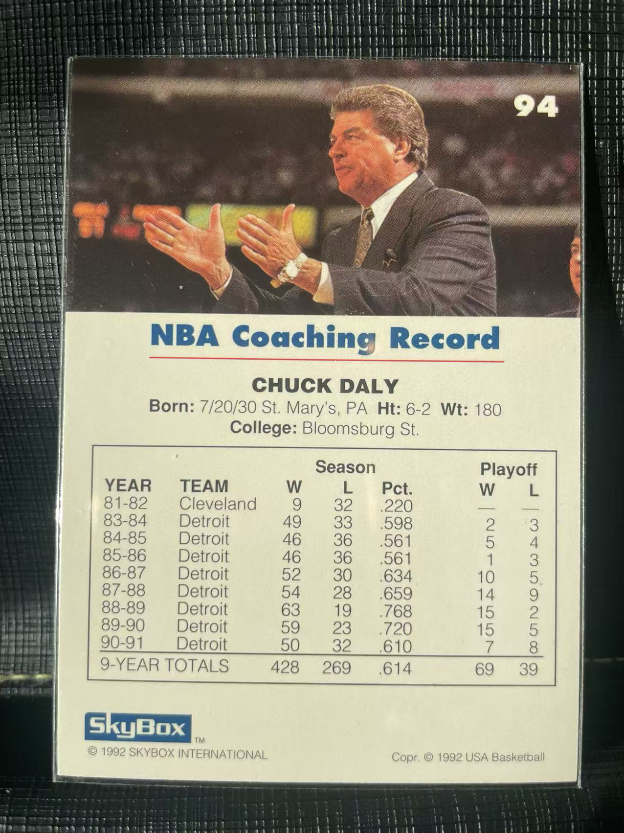 1992 SkyBox Americana Chuck Daly USA美国梦之队!主教练 查克 戴利 绝版卡!当年的经典SKYBOX系列之一!还是老卡看着舒服!很有收藏价值💗
