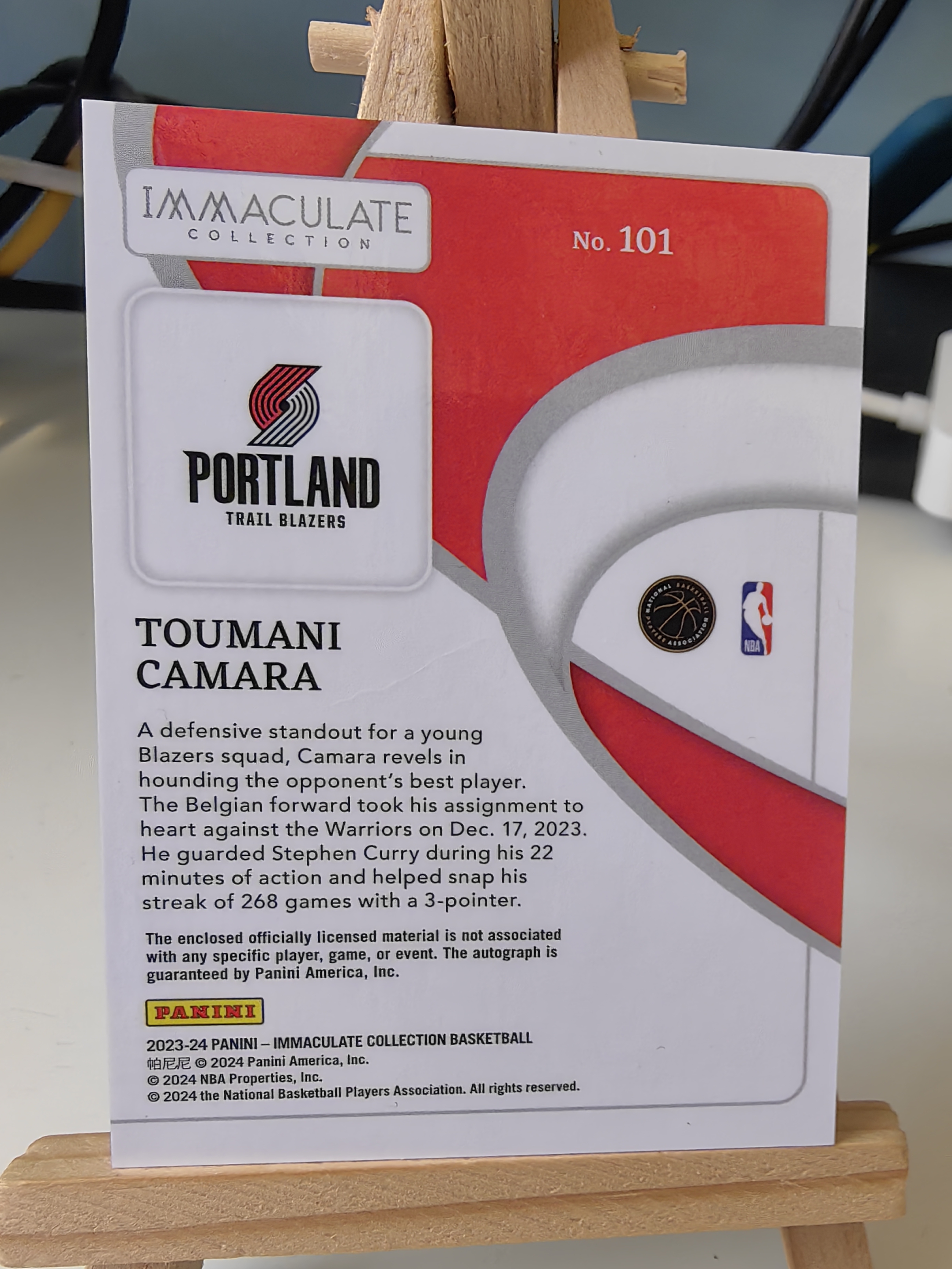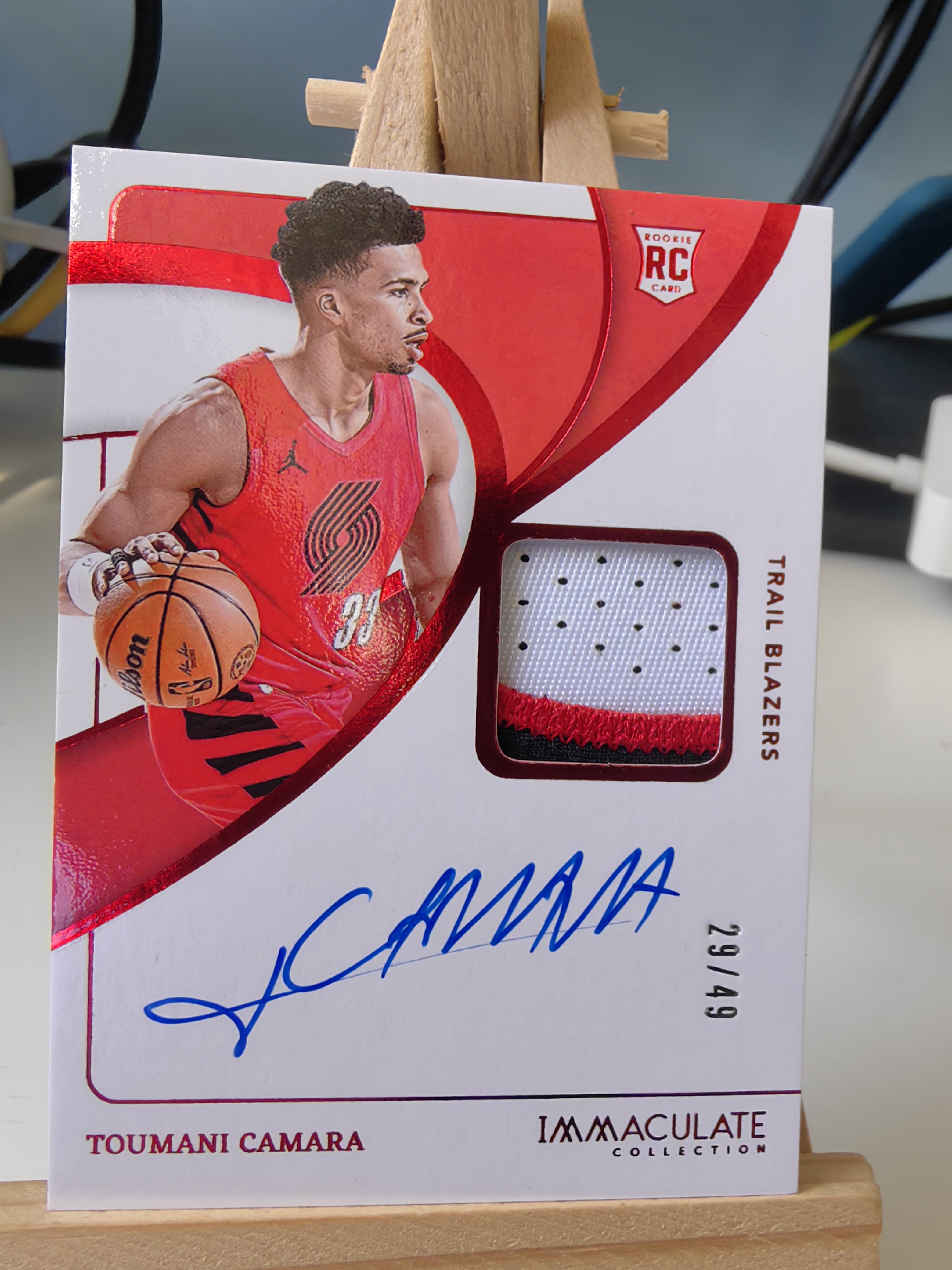 2023-24 Panini Immaculate Toumani Camara RC 开拓者 新秀 图马尼 卡马拉 爱咪咪 49编 红平行 RPA 签字 卡签 三色Patch 球衣 物料 卡品完美