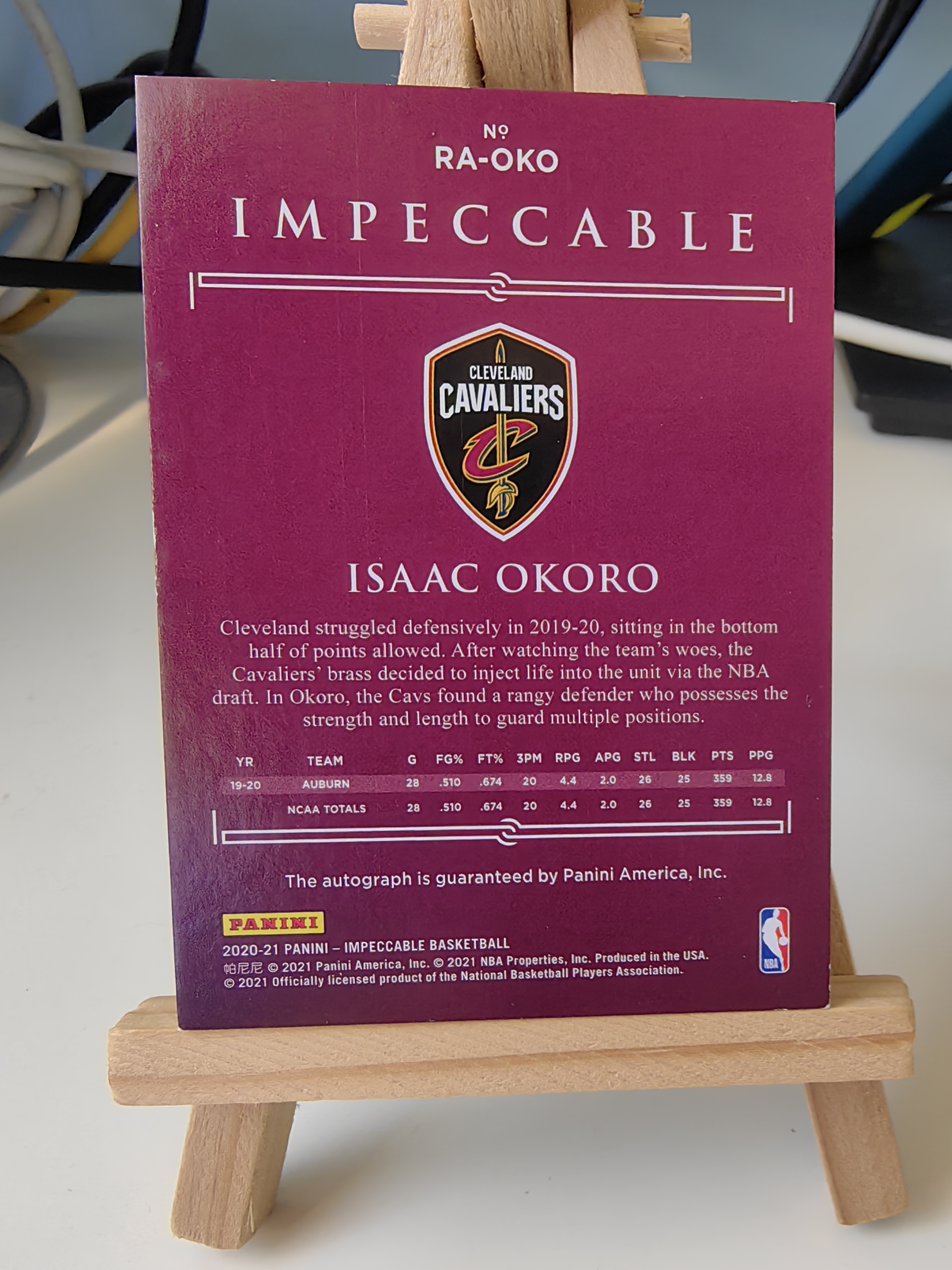 2020-21 Panini Impeccable Isaac Okoro RC 骑士 新秀 公牛 艾萨克 奥科罗 小真金 88编 红平行 签字 卡签 卡品完美 墨迹清晰 吉迪 队友
