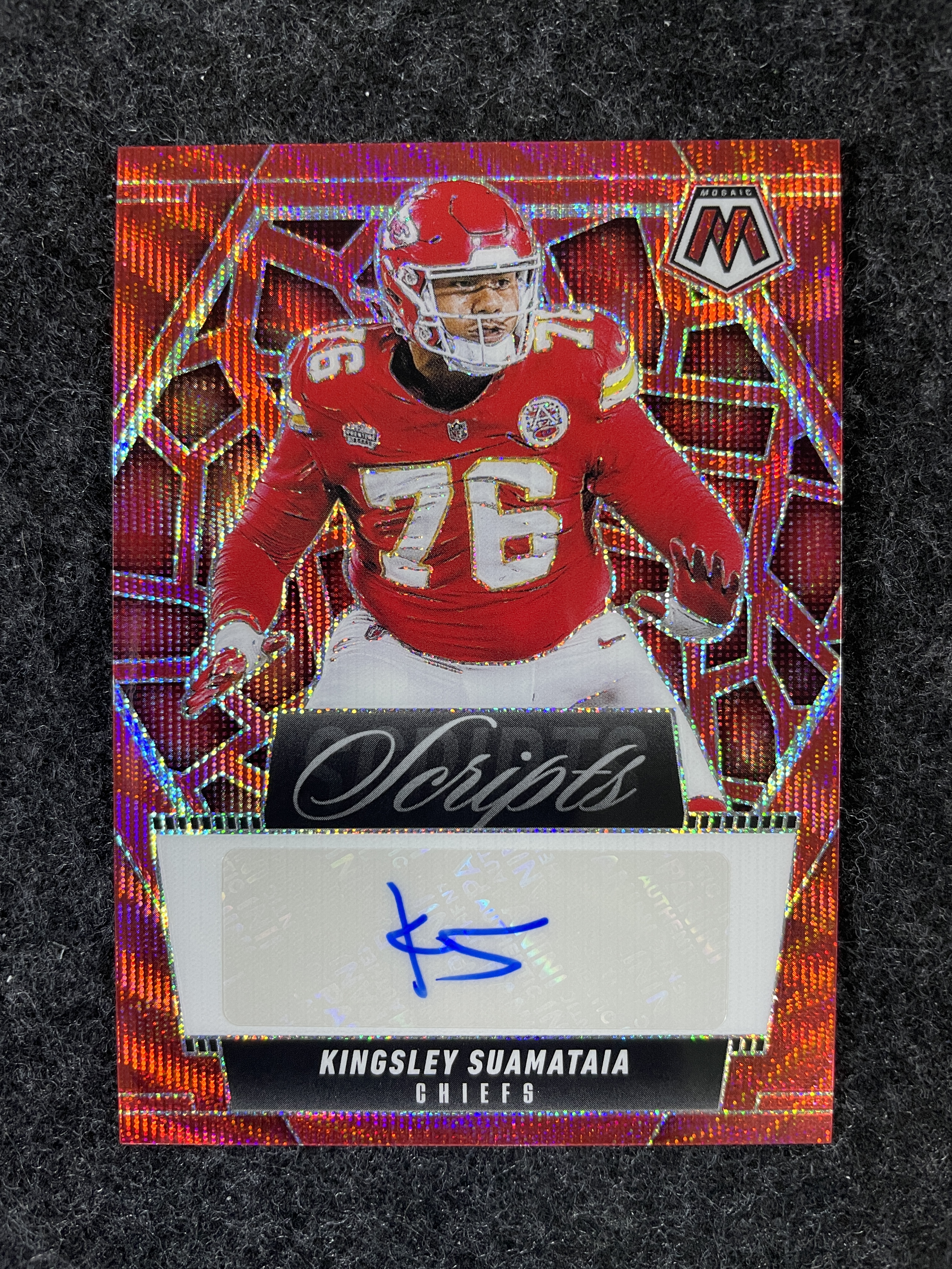 【阿木代拍259医生】2025 Panini Mosaic NFL橄榄球马赛克 Chiefs酋长 Kingsley Suamataia 苏阿马塔亚 签字 红波纹折 折射 color match