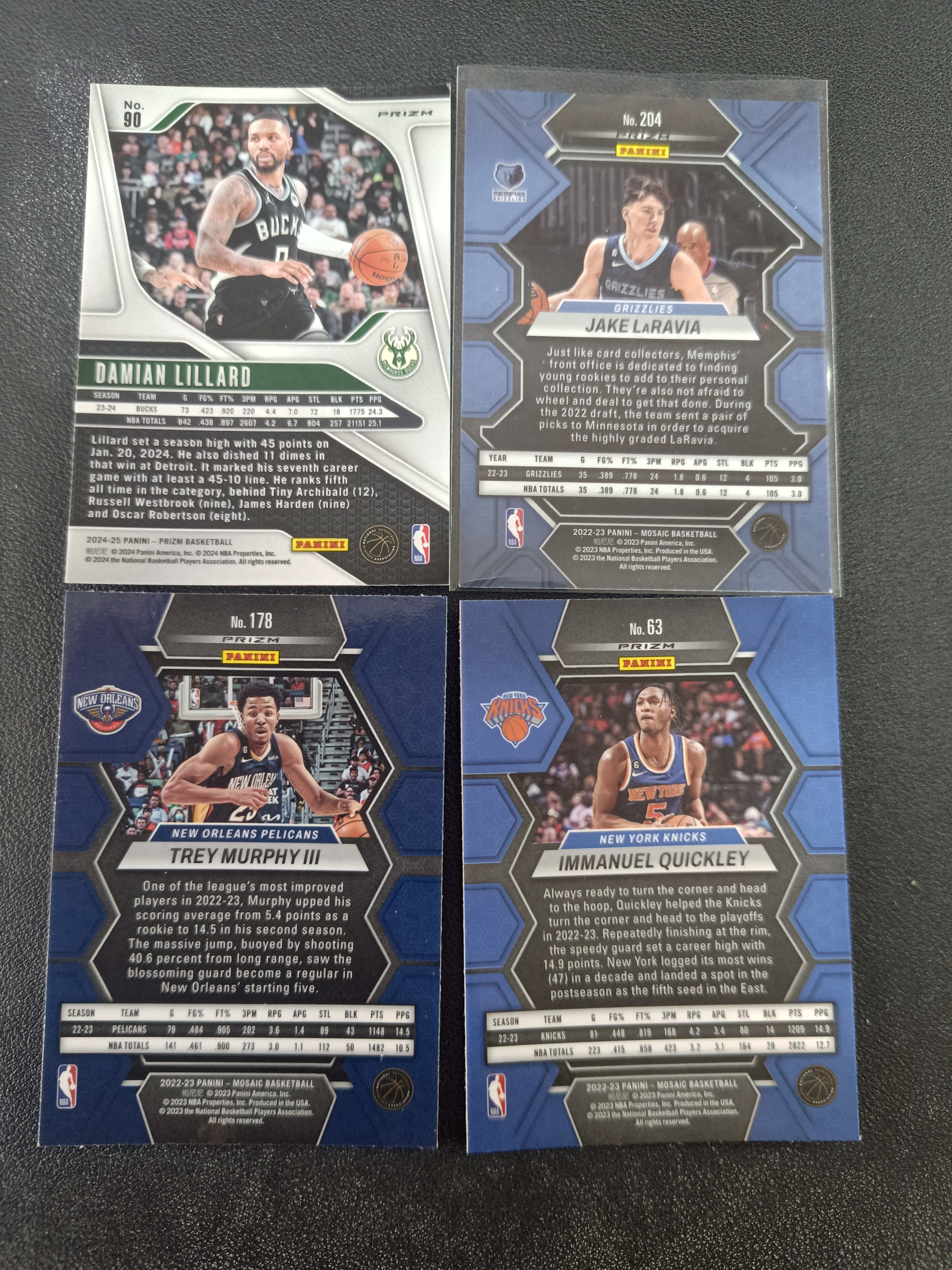 2024-25 Panini Prizm Damian Lillard 达米安 利拉德 带队 马赛克 拉拉维亚 墨菲 奎克利 红折 折射 4张打包 卡品如图 收藏必备