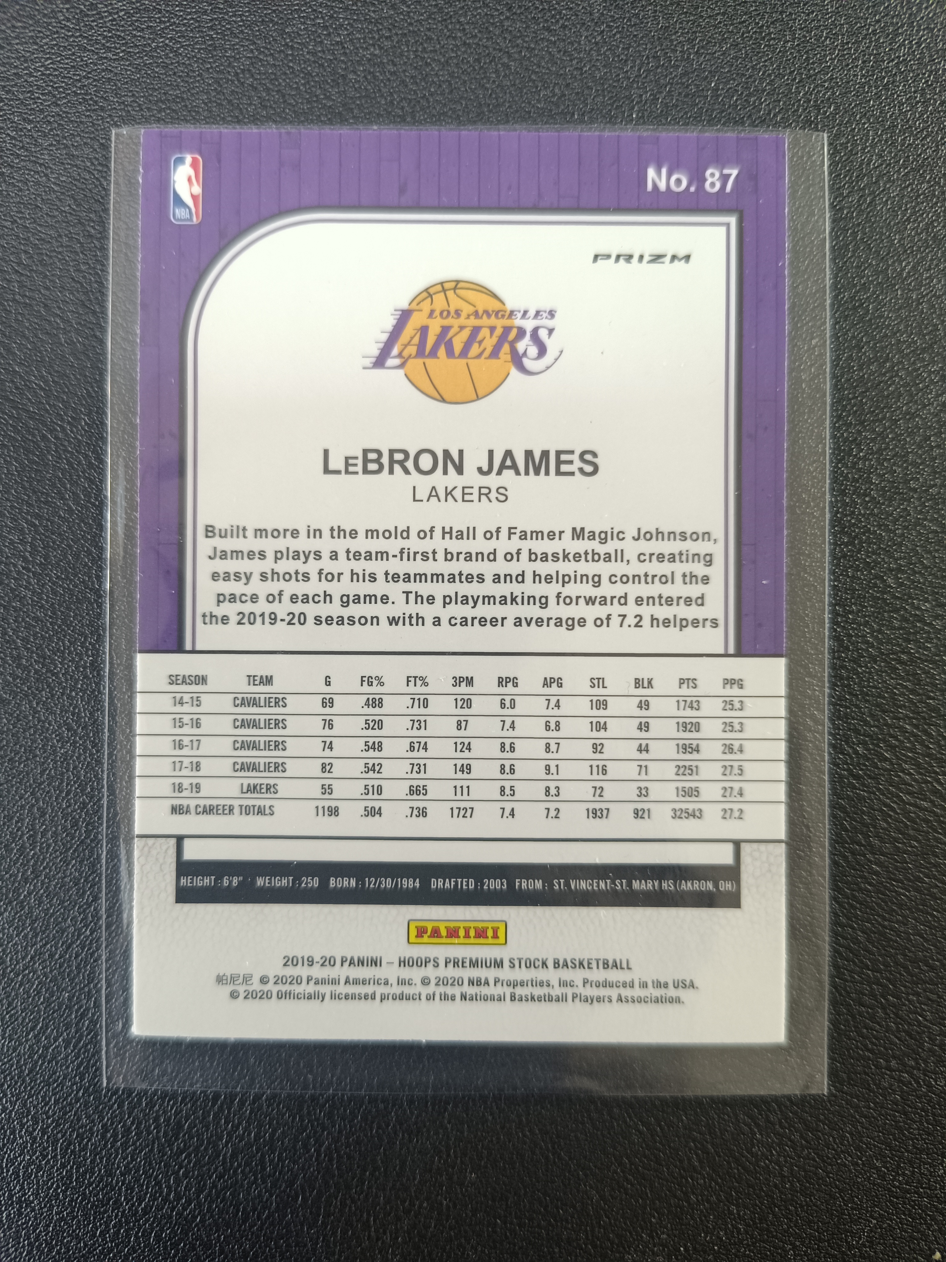 2019-20 Panini NBA Hoops Premium Stock LeBron James 勒布朗 詹姆斯 小皇帝 湖人 银折 折射 特卡 卡品如图 收藏必备
