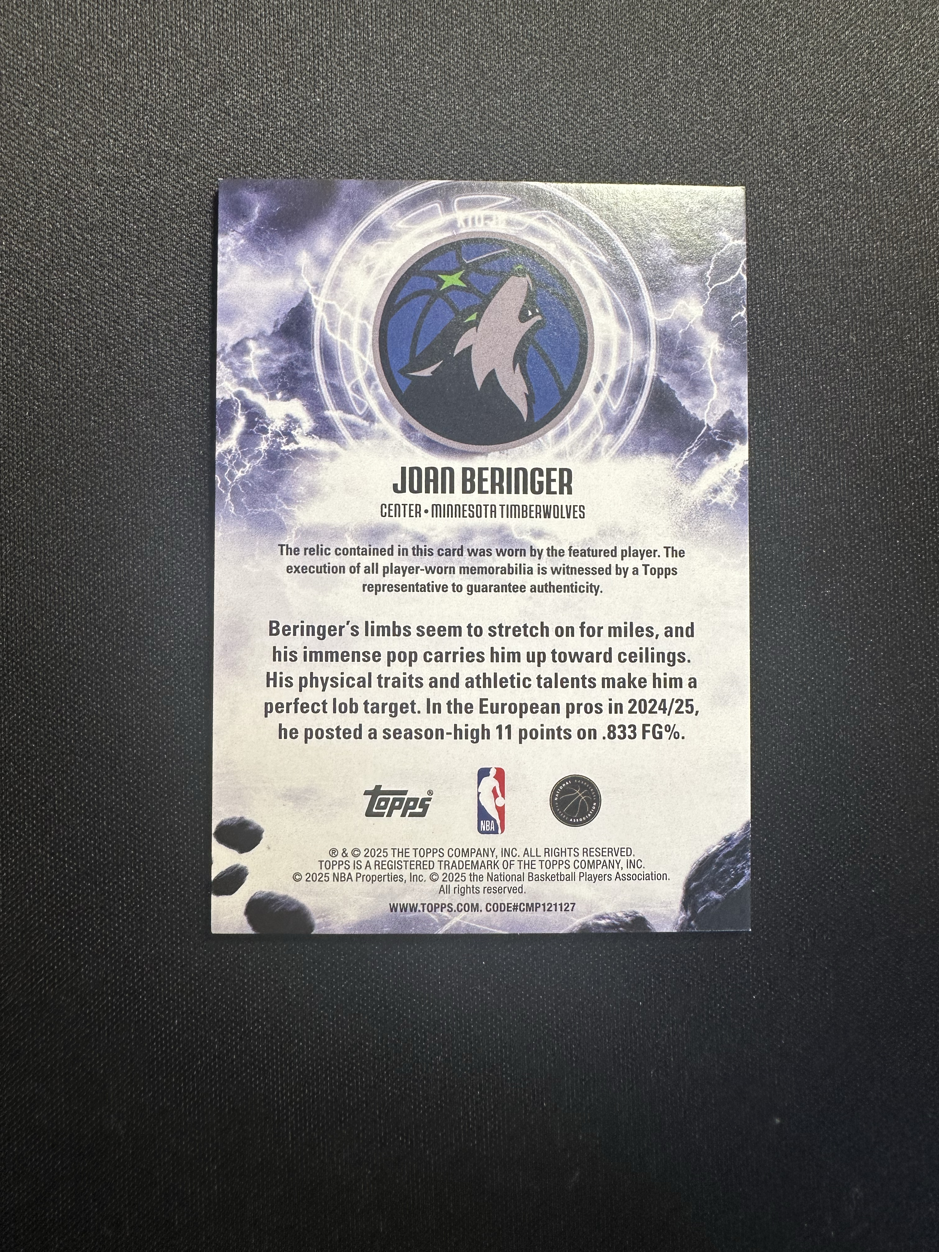 2024-25 Topps Flagship Joan Beringer RC 旗舰 森林狼 新秀RC 若昂 贝兰热 球衣 小窗物料 折射 收藏必备【火锅】