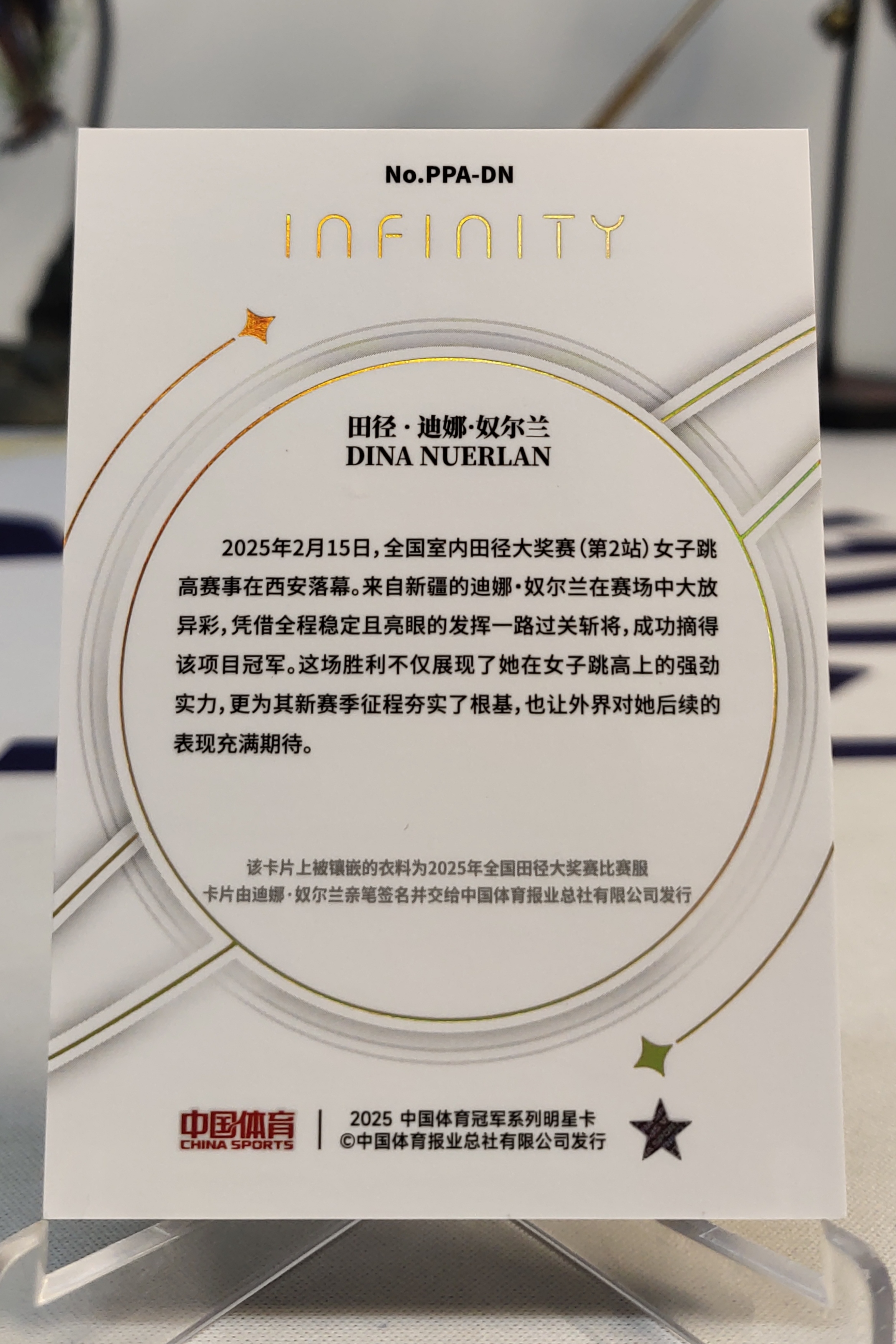 2025 中国体育 无限系列 收藏卡 infinity 田径 迪娜 奴尔兰 签字 卡签 1/10编 首编 金闪版 patch物料暴力切割 收藏必备 品相见图 不累计不到付 cwj