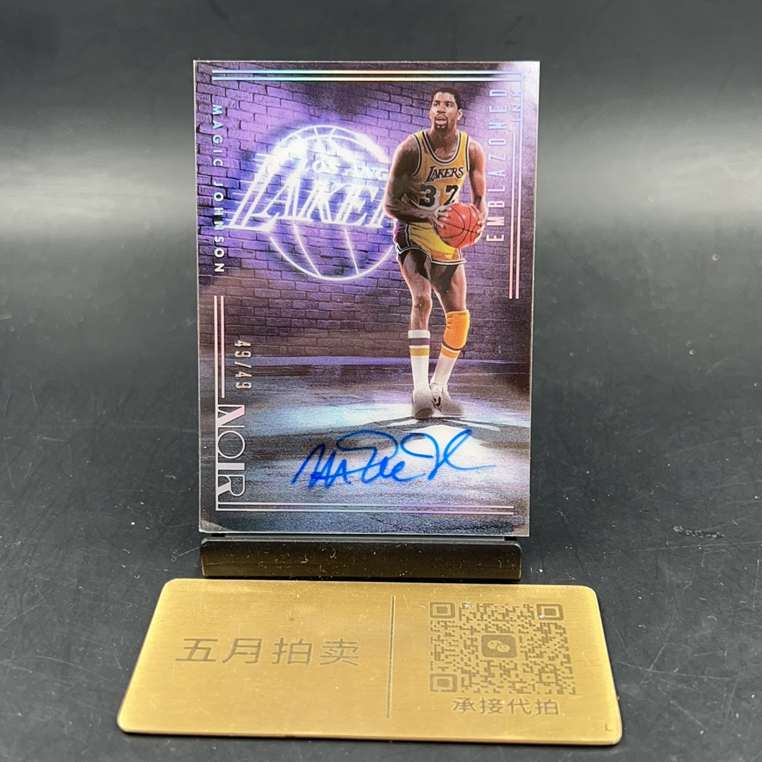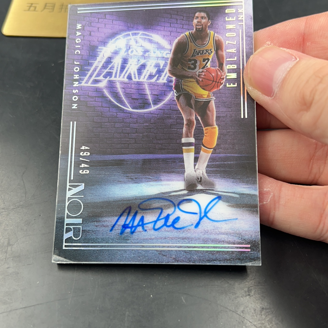 2023-24 Panini Noir Magic Johnson 【五月拍卖】诺尔 湖人 魔术师 约翰逊 49/49编 尾编 霓虹灯签 Emblazoned ink签 镜面 签字卡签 瑕疵如图呆蝼蚁