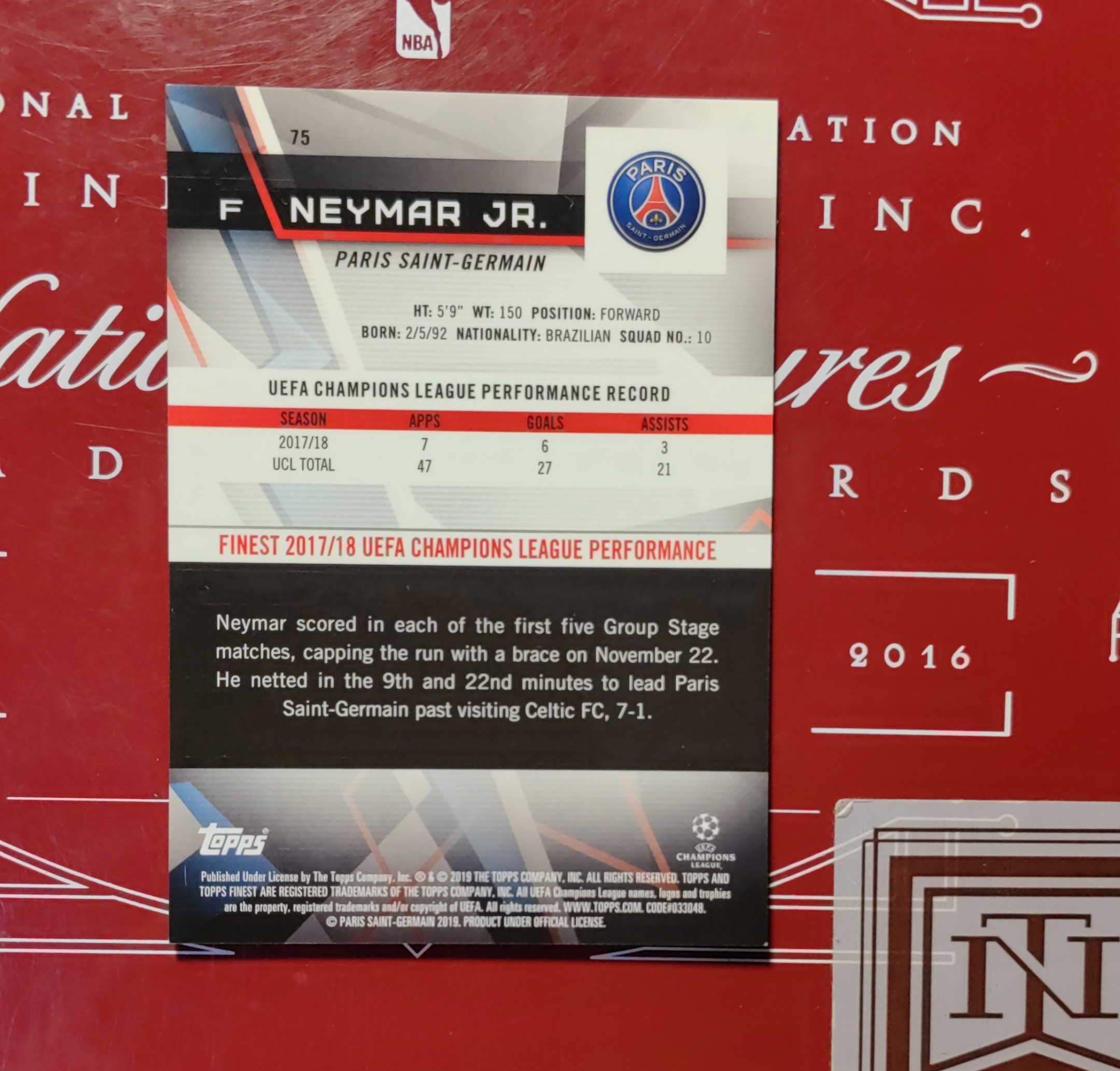 2019 Topps Finest Neymar Jr. 内马尔 巴西队巴黎圣日耳曼巴塞罗那 30/50编金折射 收藏凑套必备 梅西姆巴佩罗纳尔多世界杯冠军