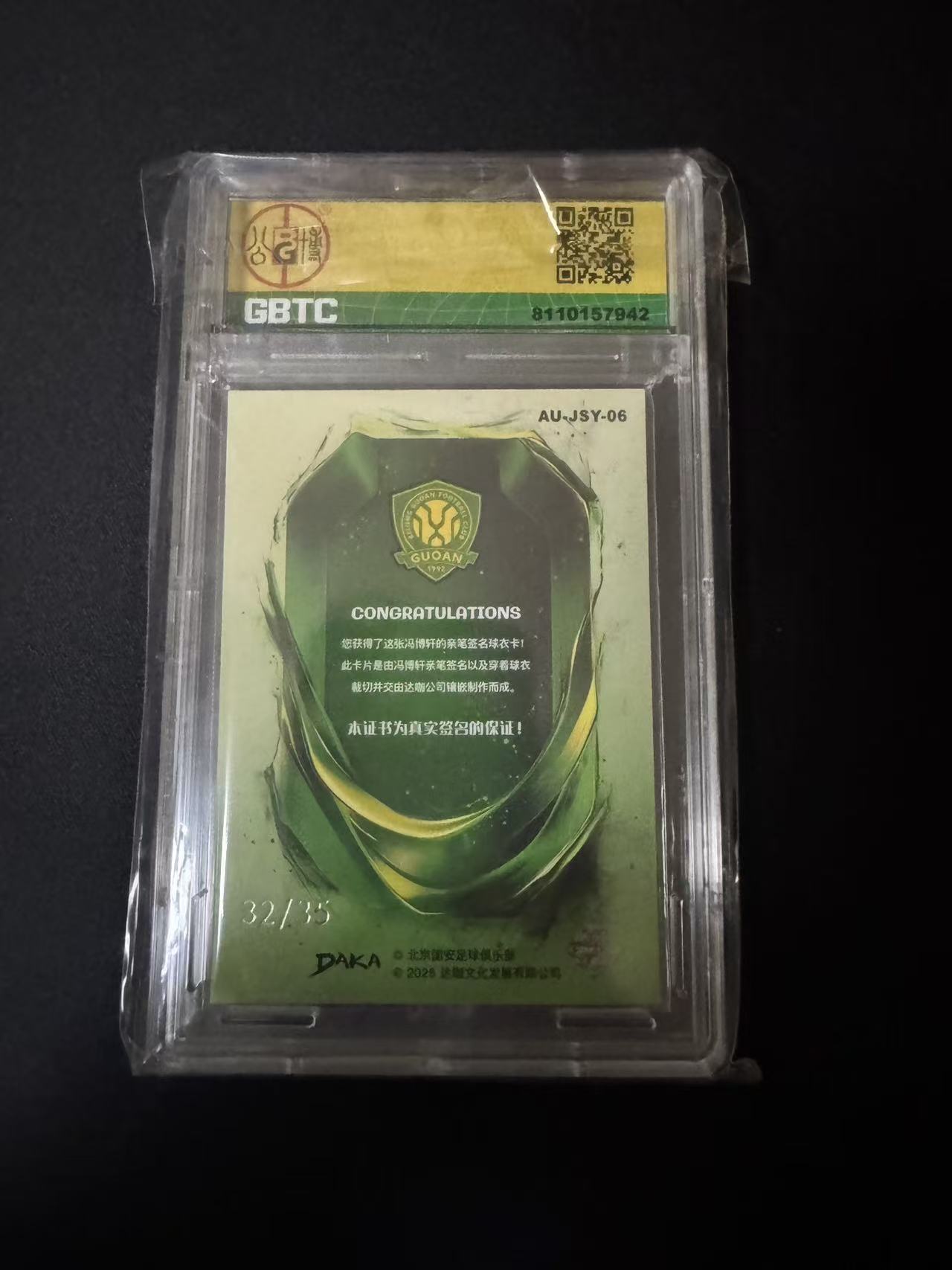 2025 DAKA 北京国安队盒 Feng Boxuan AU-Jsy-06 冯博轩 大窗球衣签字 32/35编 银平行 卡签 收藏必备 招财猫