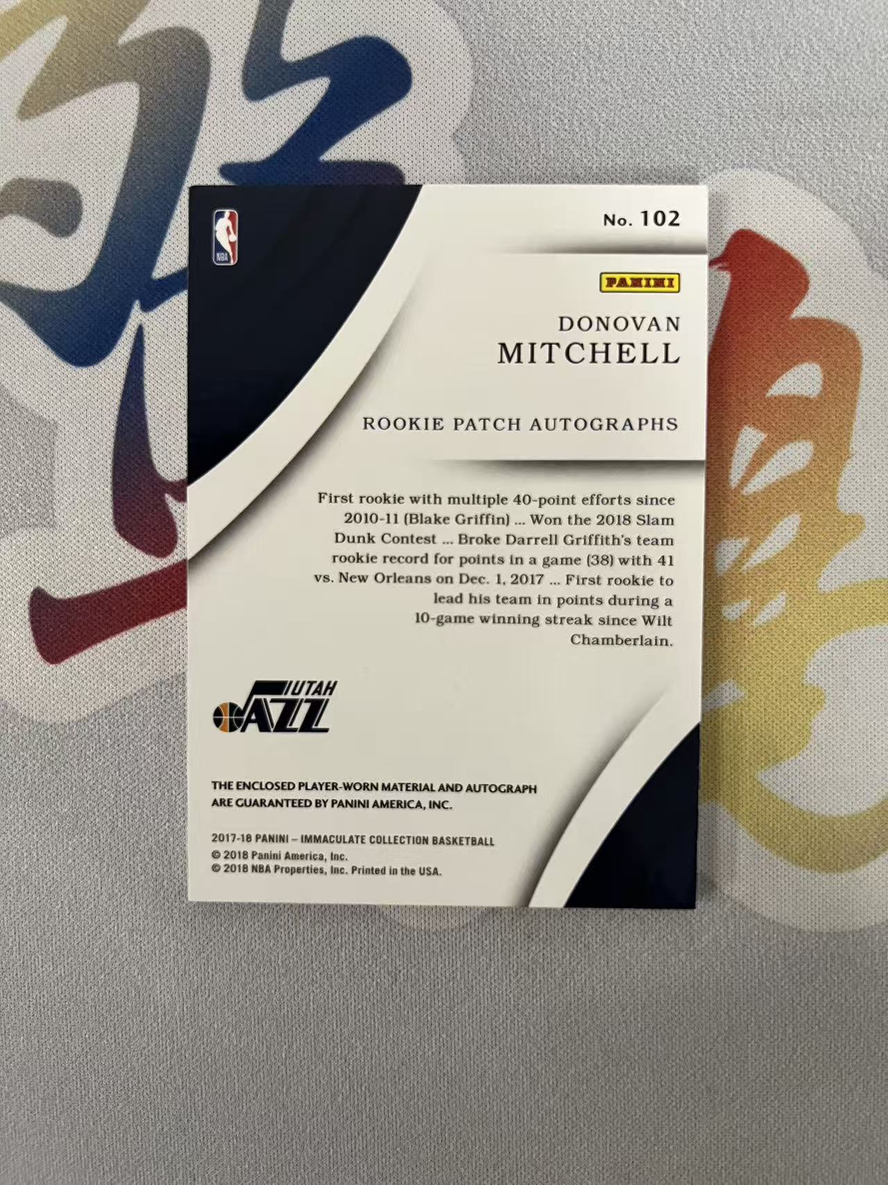 2017-18 Panini Immaculate Donovan Mitchell RC 【赋能拍卖】多诺万 米切尔 爵士新秀 爱咪咪 RPA 签字 卡签 暴力落场物料patch /99编 瑕疵如图