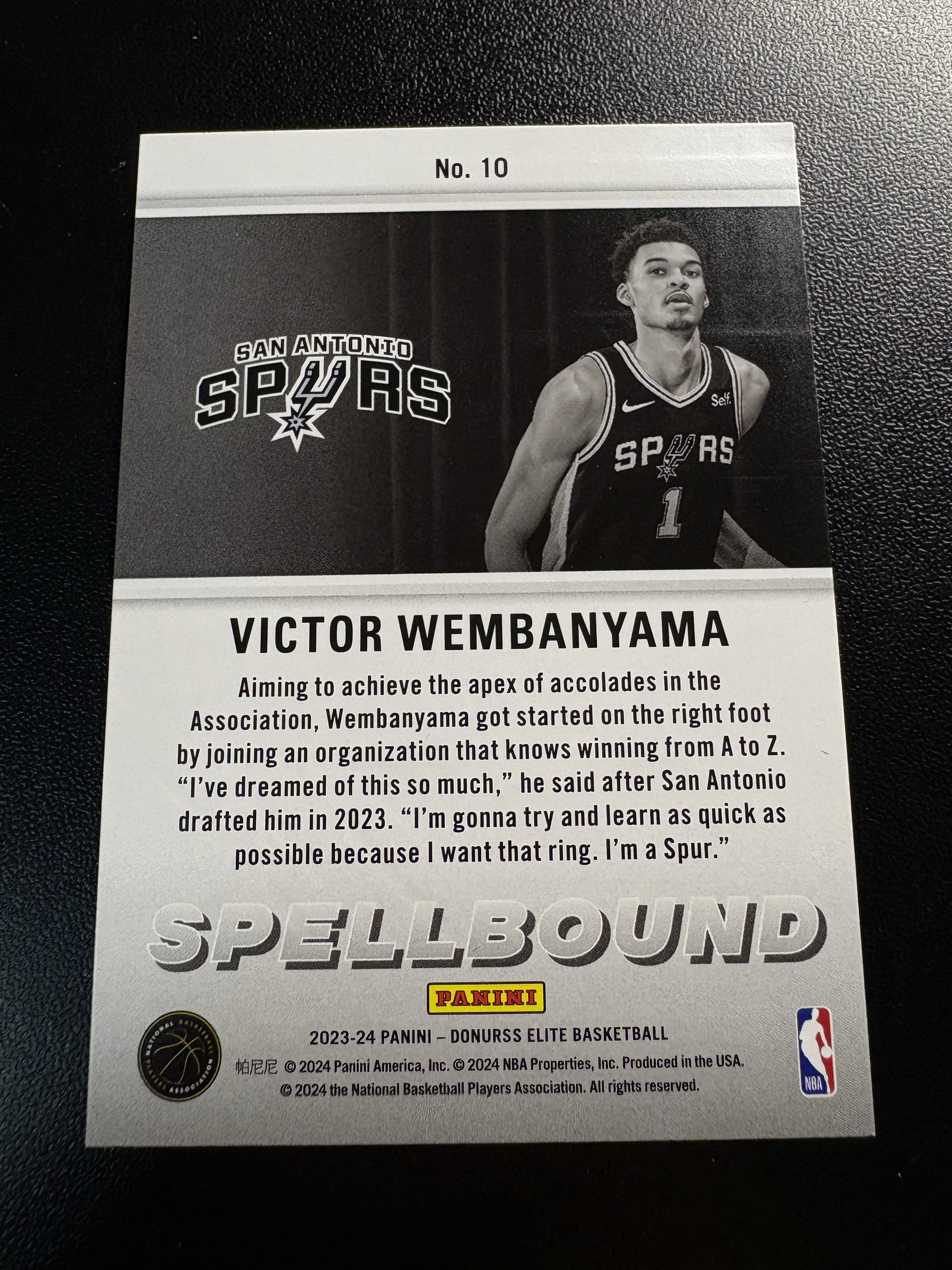 2023-24 Panini Donruss Elite Victor Wembanyama RC 【拉姆代卖】 杜蕾斯 精英 马刺 新秀 维克多 文班亚马 字母A特卡 银平行 卡品如图【50】