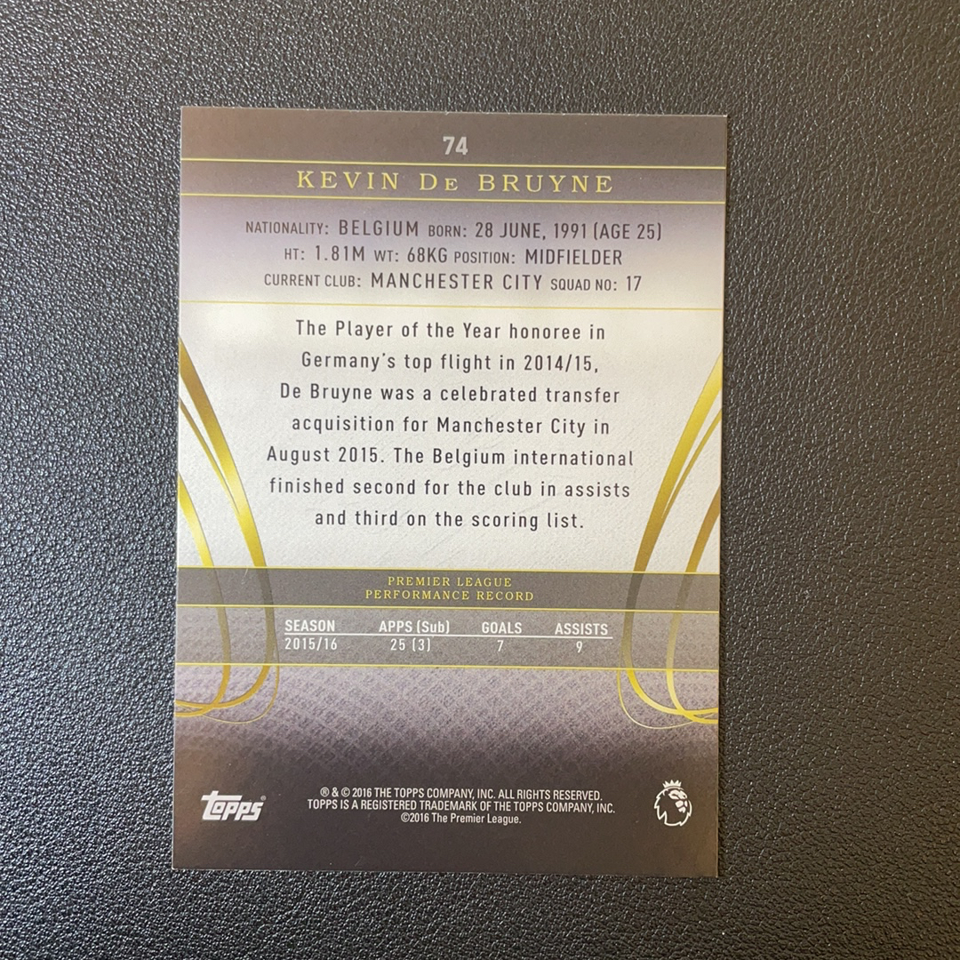 2016 Topps PREMIER GOLD 英超 DE BRUYNE 丁丁 德布劳内 RC 新秀 曼城 比利时 那不勒斯 收藏必备 轻印-SYEEER